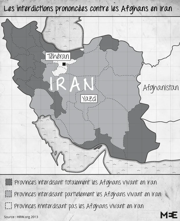 Selon un rapport publié en 2013 par Human Rights Watch, l’Iran a limité au cours des dernières années les voies légales permettant aux Afghans de revendiquer le statut de réfugiés ou un autre statut d’immigration dans le pays, alors même que les conditions en Afghanistan se détérioraient.