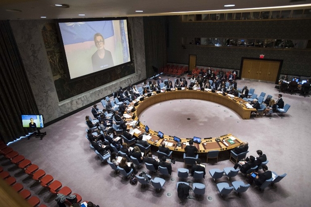 Elizabeth Hoff, représentante de l’OMS en Syrie, informe le Conseil de sécurité des Nations unies en novembre 2016 (AFP)