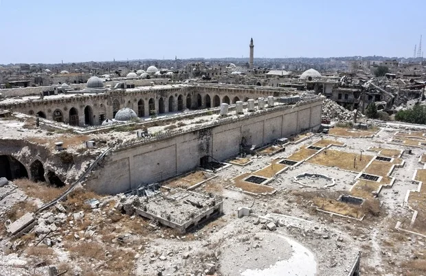 Les bâtiments alentour, notamment la mosquée des Omeyyades, sont gravement endommagés ou, comme les souks couverts, autrefois les plus grands du Moyen-Orient, complètement détruits. La zone a été disputée pendant une grande partie de la guerre.