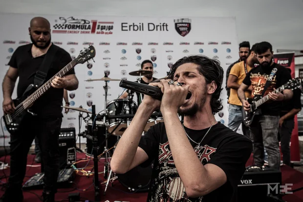 Des flots de musique s’ajoutent au chaos, du heavy metal qui se déverse de la scène où le groupe Dark Phantom joue le titre inédit de leur premier album, Nation of Dogs, sorti au début du mois de mai. Fondé en 2008 par quatre musiciens de Kirkouk, le groupe se compose de membres très différents : deux Kurdes, un Turkmène et un Arabe.