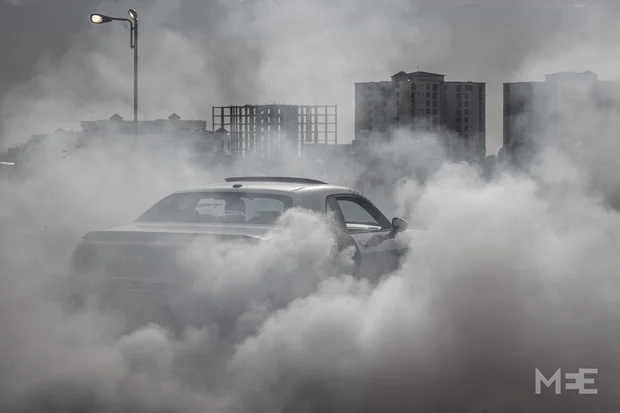 Chacun à son tour, les pilotes viennent de terminer leur démonstration, mettant un terme au tumulte, et le public forme un cercle de plus en plus serré autour des voitures des concurrents et des amateurs, qui virevoltent en pur drift freestyle, dans un énorme nuage de poussière opaque.