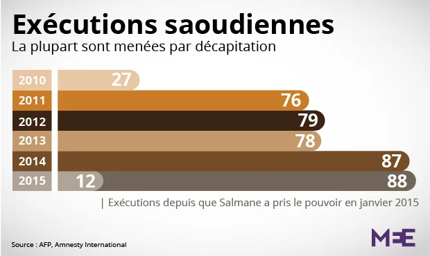 Le 26 mai dernier, l’Arabie saoudite a fait exécuter trois personnes, portant à 88 le nombre total de décapitations en 2015, soit plus de la totalité de 2014