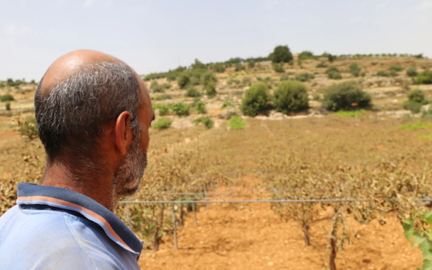 « C’est un vrai massacre. Il n’y a pas d’autre mot pour ce vous voyez ici », conclut le militant en balayant d’un geste les hectares de vignes fanées appartenant à Karaje.