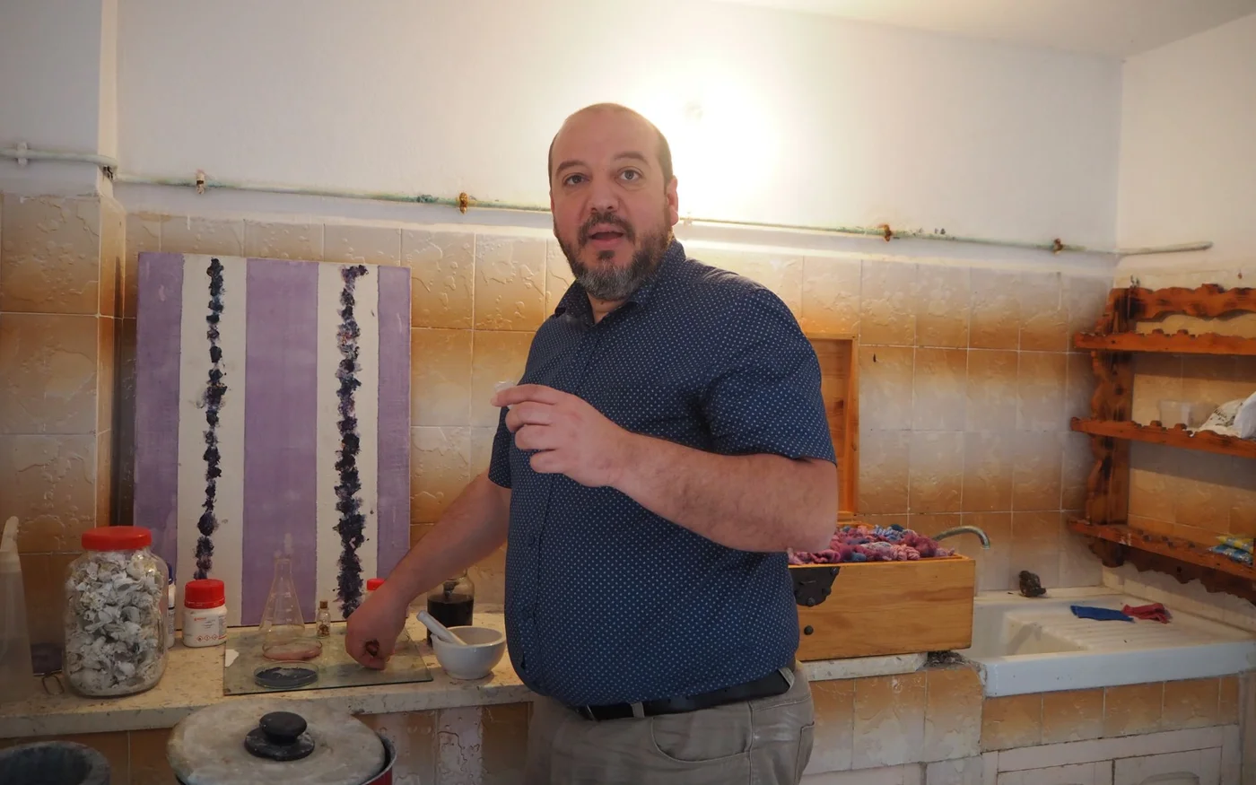 Sortant la tête de la remise carrelée de son jardin, dans une banlieue de Tunis, Ghassen Nouira raconte à Middle East Eye, sourire aux lèvres, comment son travail de production de poudre de pourpre à l’aide de méthodes millénaires lui a presque coûté son mariage.