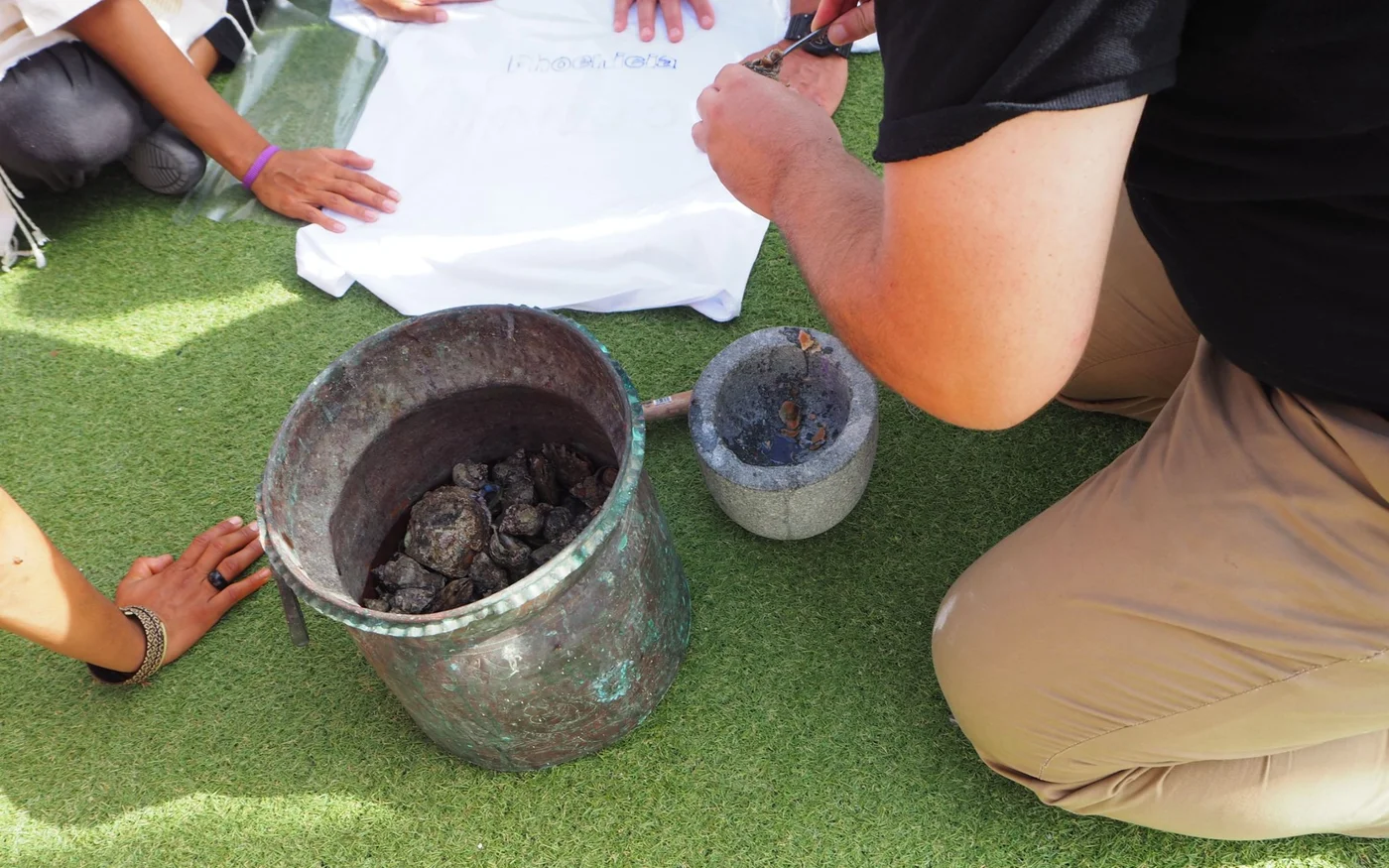 Ghassen Nouira organise désormais des ateliers à travers la Tunisie, pour les écoles, les musées, les organisations et lors d’événements historiques ou culturels. Il trimballe une énorme boîte en bois contenant des dizaines d’échantillons de colorants (sous forme de poudre et de tissu), des glandes séchées de murex, des coquilles et des outils, ainsi que divers équipements avec lui. Et ses conférences et démonstrations encouragent la pratique.
