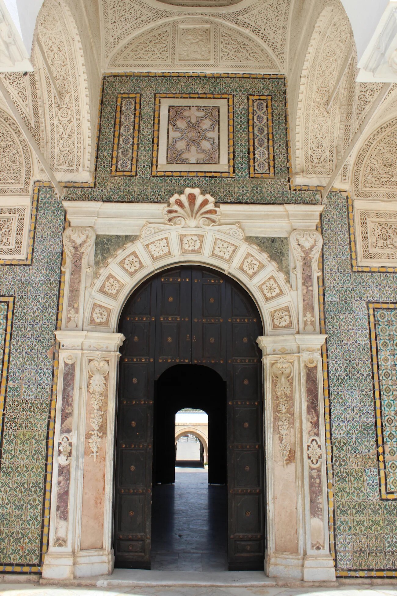Une longue et large allée dessert la porte principale du palais vers une pièce voutée appelée Driba (ou vestibule), conçue comme une salle d’attente pour les visiteurs du bey. Elle comporte des banquettes avec des niches, à droite et à gauche, des murs en céramique et des ouvertures arquées de part et d’autre. Elle ouvre sur une grande cour pavée.