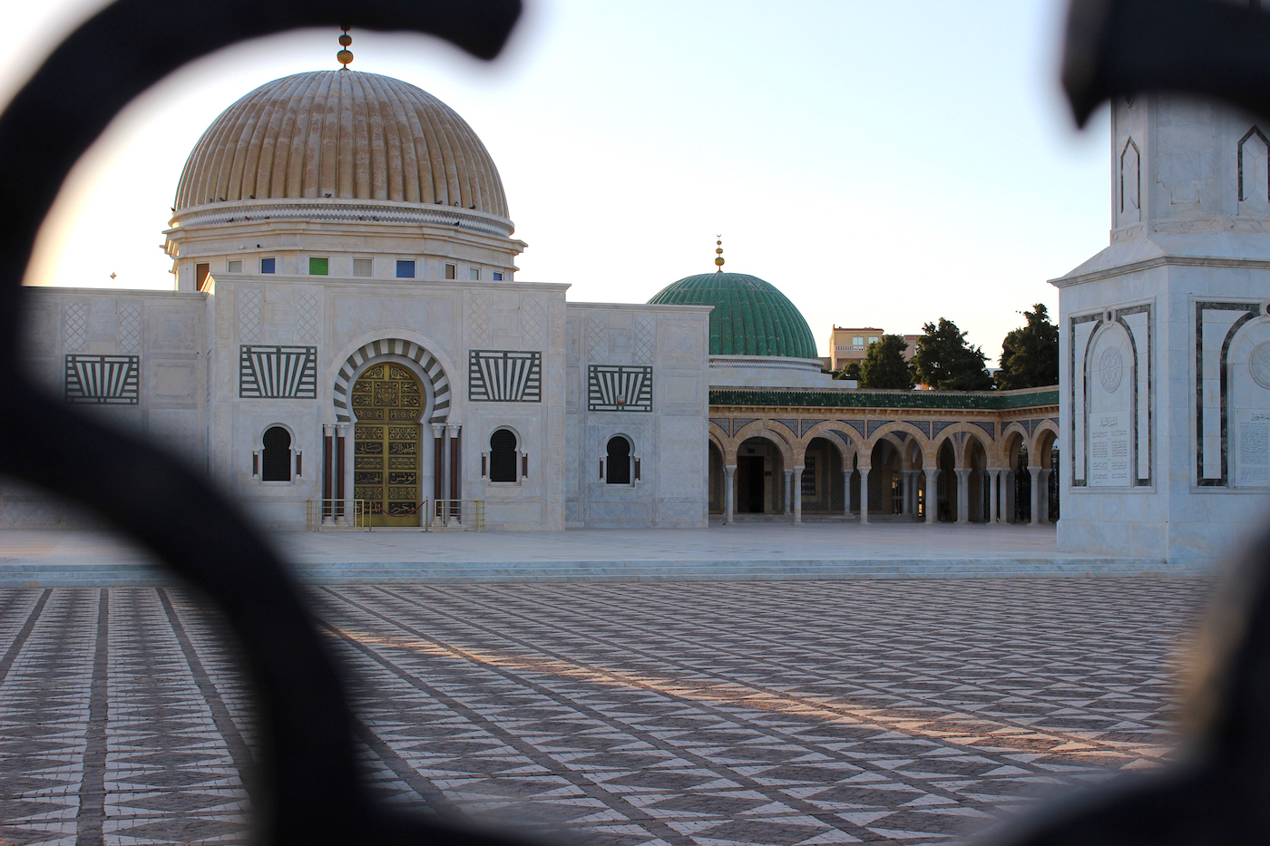 Sur la porte principale du mausolée est inscrit en l’honneur de Bourguiba : « Le combattant suprême, bâtisseur de la nouvelle Tunisie, émancipateur de la femme ».