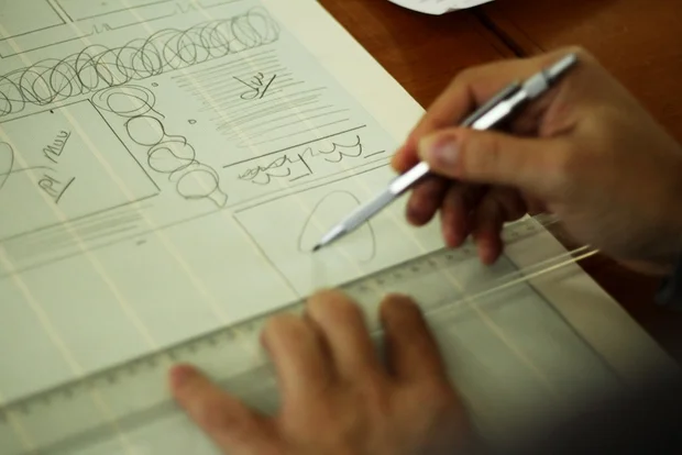 Au centre de la table, une feuille au format A3 sur laquelle se dessinera au fur et à mesure la Une du prochain journal. Hakan Akarsu est aux commandes. Muni d’une règle et d’un crayon de bois, il trace les colonnes. « Je laisse un encart en haut à droite du journal pour le mot de soutien à nos collègues toujours en prison », précise-t-il.