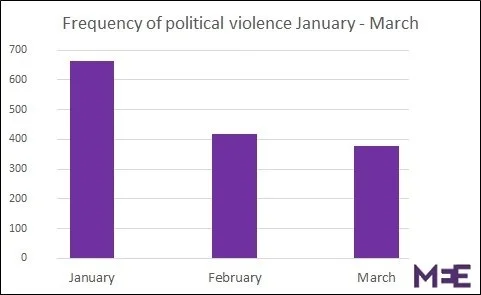 Ce programme de surveillance non gouvernemental, financé par l'International Development Centre, a constaté une baisse constante du nombre d'incidents depuis le début de l'année ; le nombre le plus élevé d'actes violents (664) a été enregistré en janvier, mois du quatrième anniversaire du soulèvement égyptien de 2011 contre Hosni Moubarak.