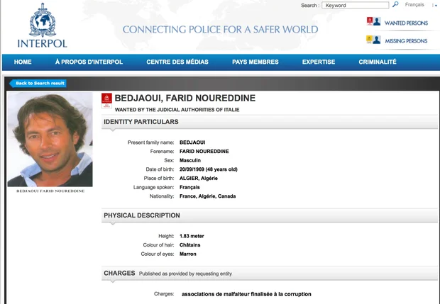 Recherché par Interpol depuis 2014, Farid Bedjaoui a vu une partie de ses avoirs, notamment au Liban, gelés par la police italienne.