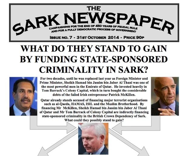 Environ six mois après le marché passé avec Colony Capital, un bulletin d’information, lié à la famille Barclay par son rédacteur en chef et basé sur l’île anglo-normande de Sark, a commencé à publier des articles selon lesquels Patrick McKillen était financé par le Qatari HBJ par l’intermédiaire des investissements américains.