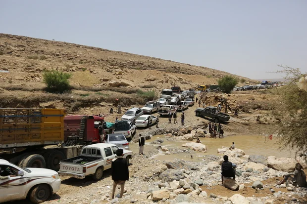 Ces longs embouteillages aux points de passage de la rivière sont des cibles faciles pour les frappes aériennes saoudiennes.