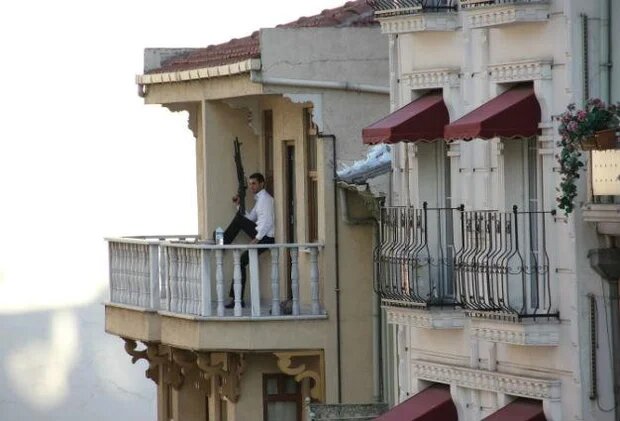 Un homme jette de l’argent depuis un toit après avoir braqué une banque à Istanbul