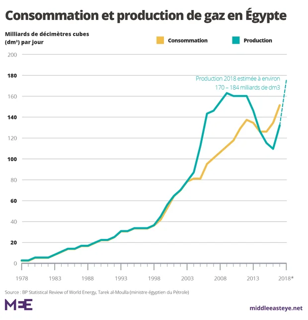 L’urgence de la signature d’un contrat s’est d’autant plus exacerbée que l’Égypte est en passe d’atteindre l’autosuffisance énergétique. Évolution majeure : depuis plusieurs années il lui faut importer à grand frais du gaz naturel liquéfié (GNL), parce qu’instabilité politique et mauvaise gestion du secteur énergétique l’empêchaient d’exploiter son propre gaz.