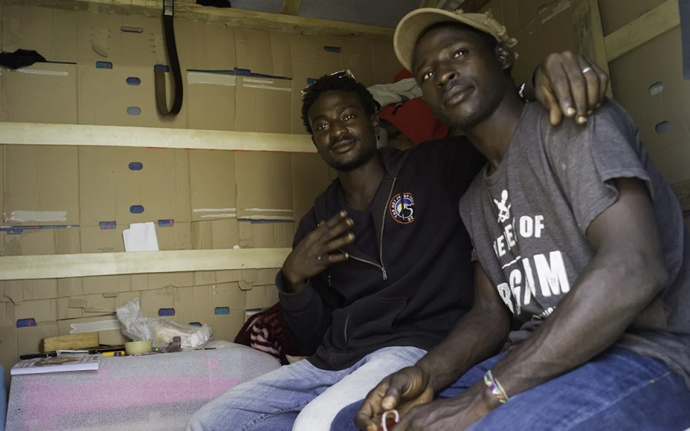 Ali, un Soudanais qui partage son campement avec 14 autres personnes, insistera pour nous offrir un thé et nous raconter son voyage et sa vie au Soudan. Il parle un anglais parfait, appris, dit-il, à l'institut des langues. « Dites-leur, aux Français, qu'on est des gens tranquilles. On a fui notre pays car c'était dangereux. On a préféré affronter tous ces dangers. Mais en arrivant ici, on ne s‘attendait pas à de telles conditions de vie. »