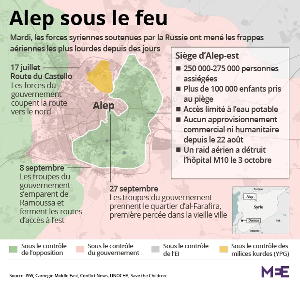 Des centaines de personnes ont été tuées par des bombes russes dans la partie est d’Alep tenue par les rebelles (AFP)