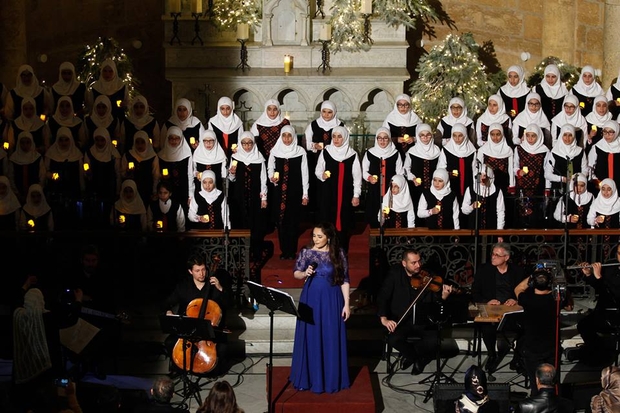 On peut voir la quarantaine de choristes chanter le classique de Noël « Douce nuit, sainte nuit » en arabe dans l'Église catholique grecque de St Elias au centre-ville de Beyrouth, dans un quartier majoritairement musulman de la ville.