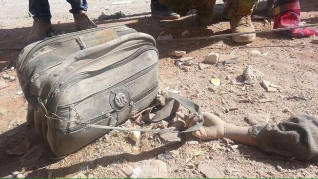 D’autres activistes de la province ont partagé sur les réseaux sociaux une photo montrant le bras d’un enfant, sectionné au niveau de l’épaule, toujours en train de tenir la sangle d’un cartable poussiéreux.
