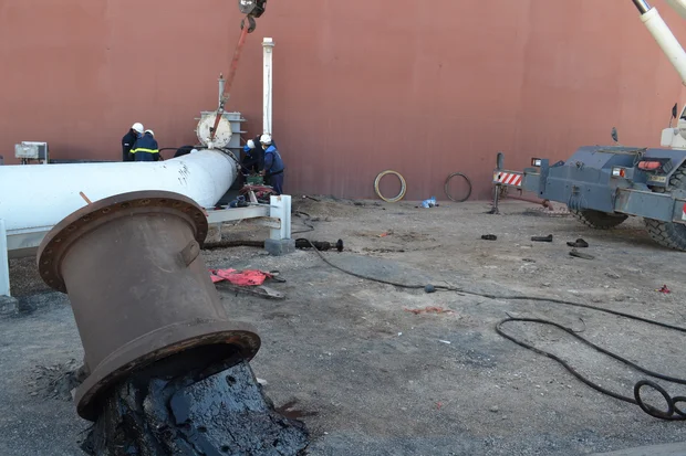 La mission est colossale pour les ouvriers. Le site a en effet été touché par les combats de décembre 2014, mais aussi par l’inactivité et par quelques attaques sporadiques de groupes extrémistes, comme le groupe État islamique (EI). Alors Ibrahim Malhouf travaillait avec les moyens du bord : « Cette citerne, là-bas, a été abîmée, mais on peut quand même la remplir aux deux-tiers », a-t-il expliqué en montrant du doigt un réservoir dont la partie supérieure a pris la forme arrondie de l’acier fondu. « Ici, les pipelines n’étaient plus utilisables, donc on les a remplacés par des tuyaux flottants dont nous n’avions plus besoin pour l'exploitation offshore. »