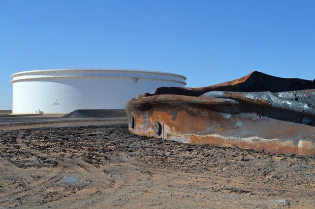 D’un côté la mer, de l’autre le désert. Au milieu, des immenses citernes éventrées ou brunies par les flammes. C’est un paysage dévasté qu’offre al-Sedra, le plus grand terminal de Libye, depuis les combats qui l’ont touché en décembre 2014, forçant l’arrêt de la production.