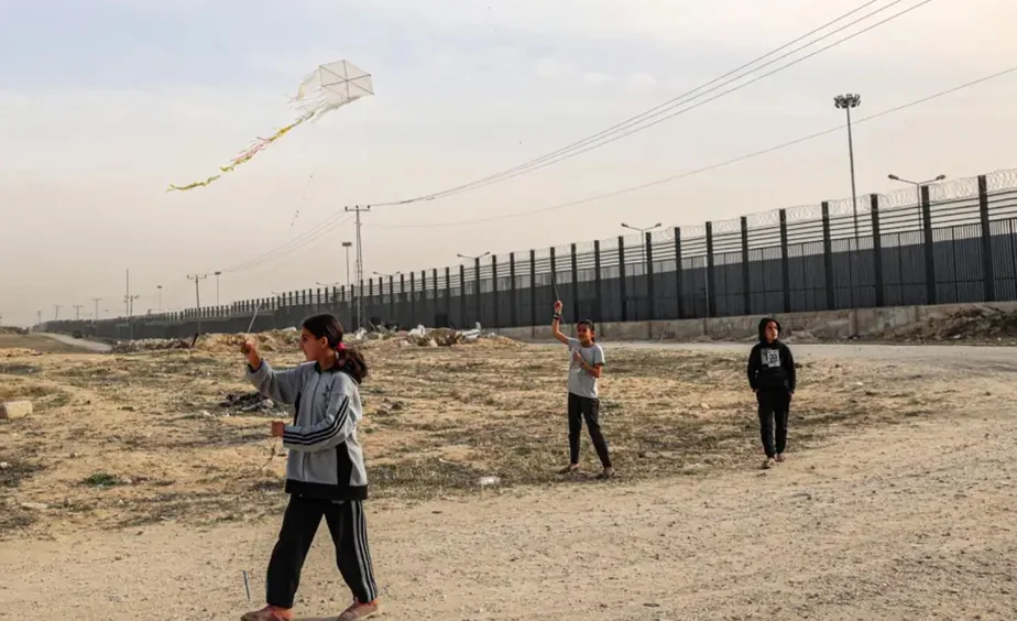 À Rafah, des enfants de Gaza font voler des cerfs-volants au-dessus de la frontière avec l’Égypte