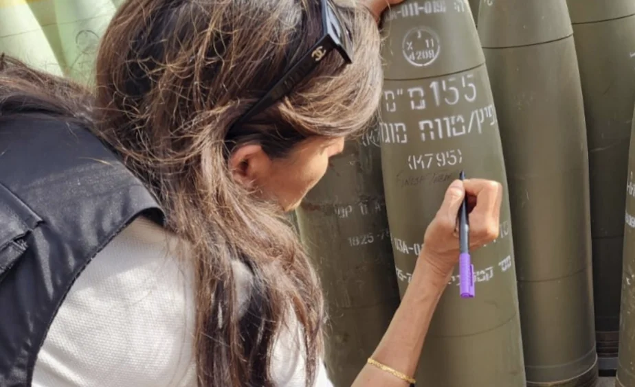 Nikki Haley photographiée en écrivant « Achevez-les » sur un obus israélien