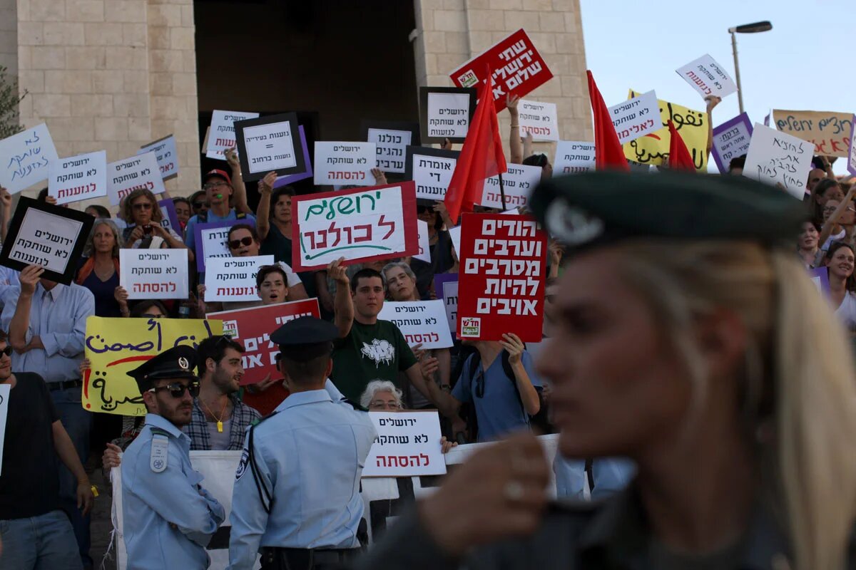 Left wing Israeli protesters take part in a demonstration against the march in West Jerusalem (MEE/Tess Scheflan)