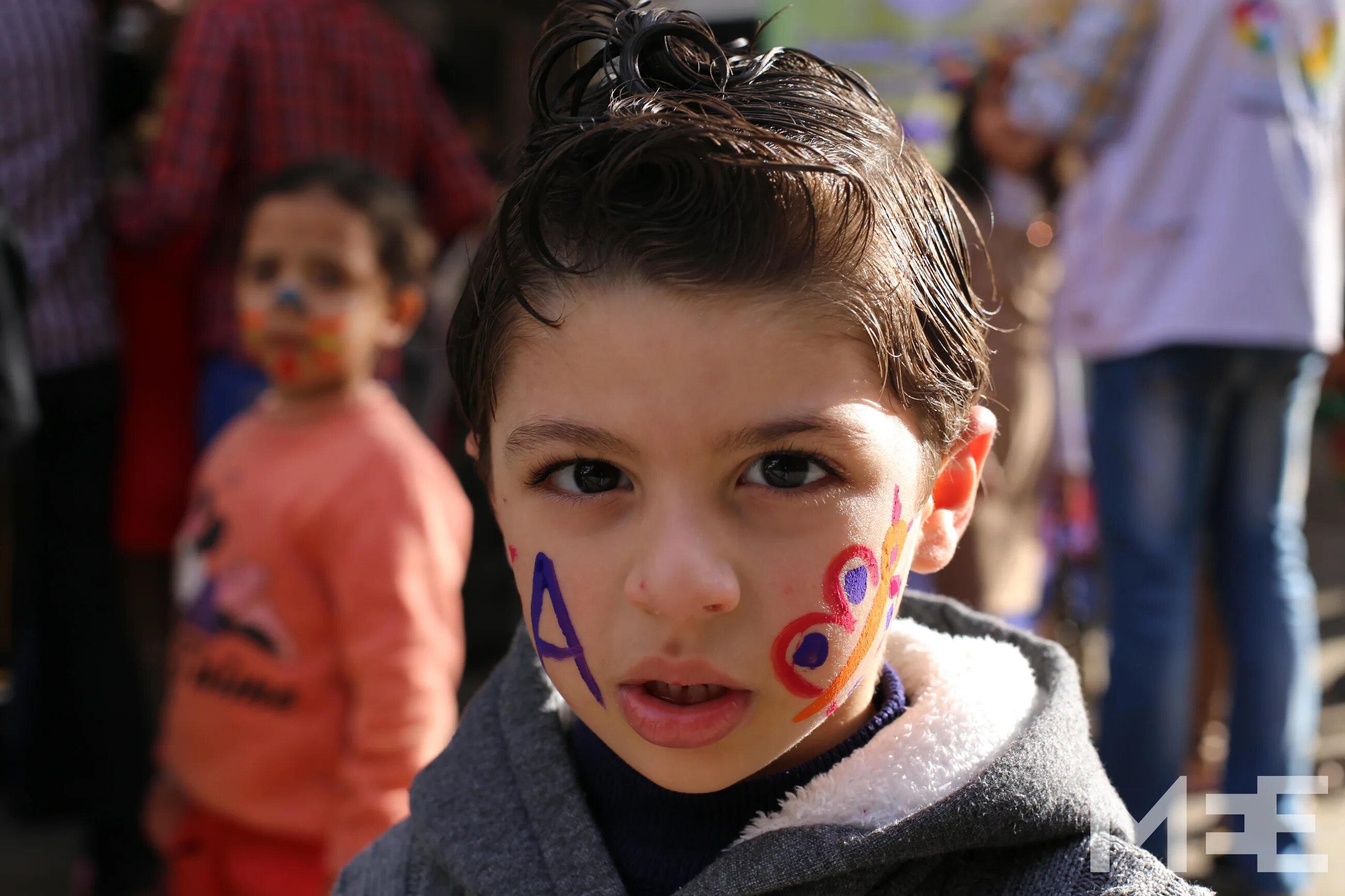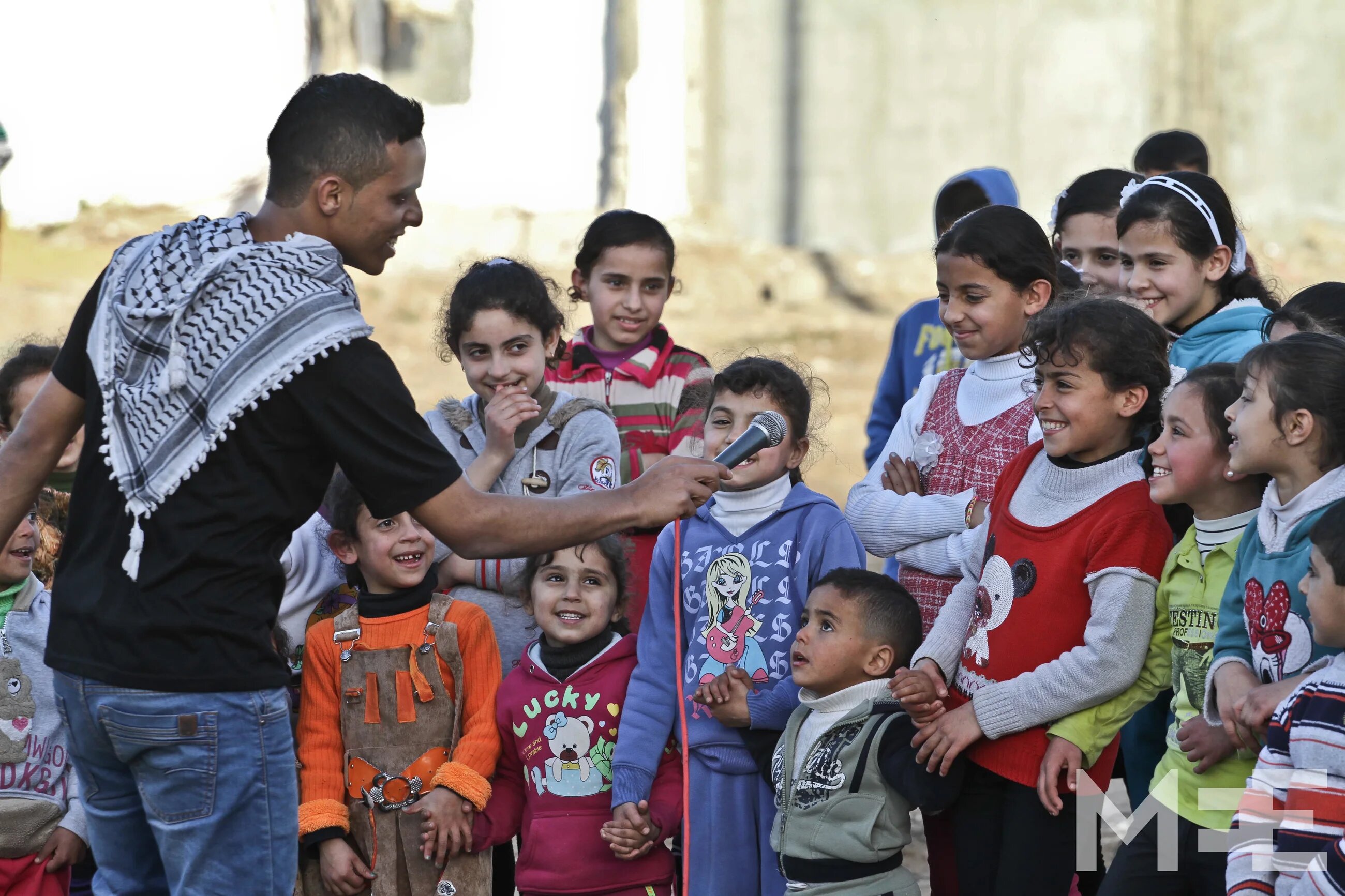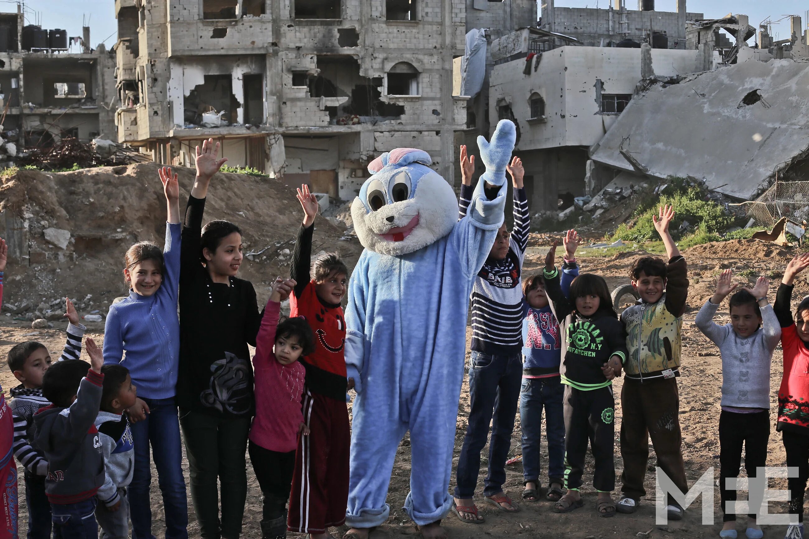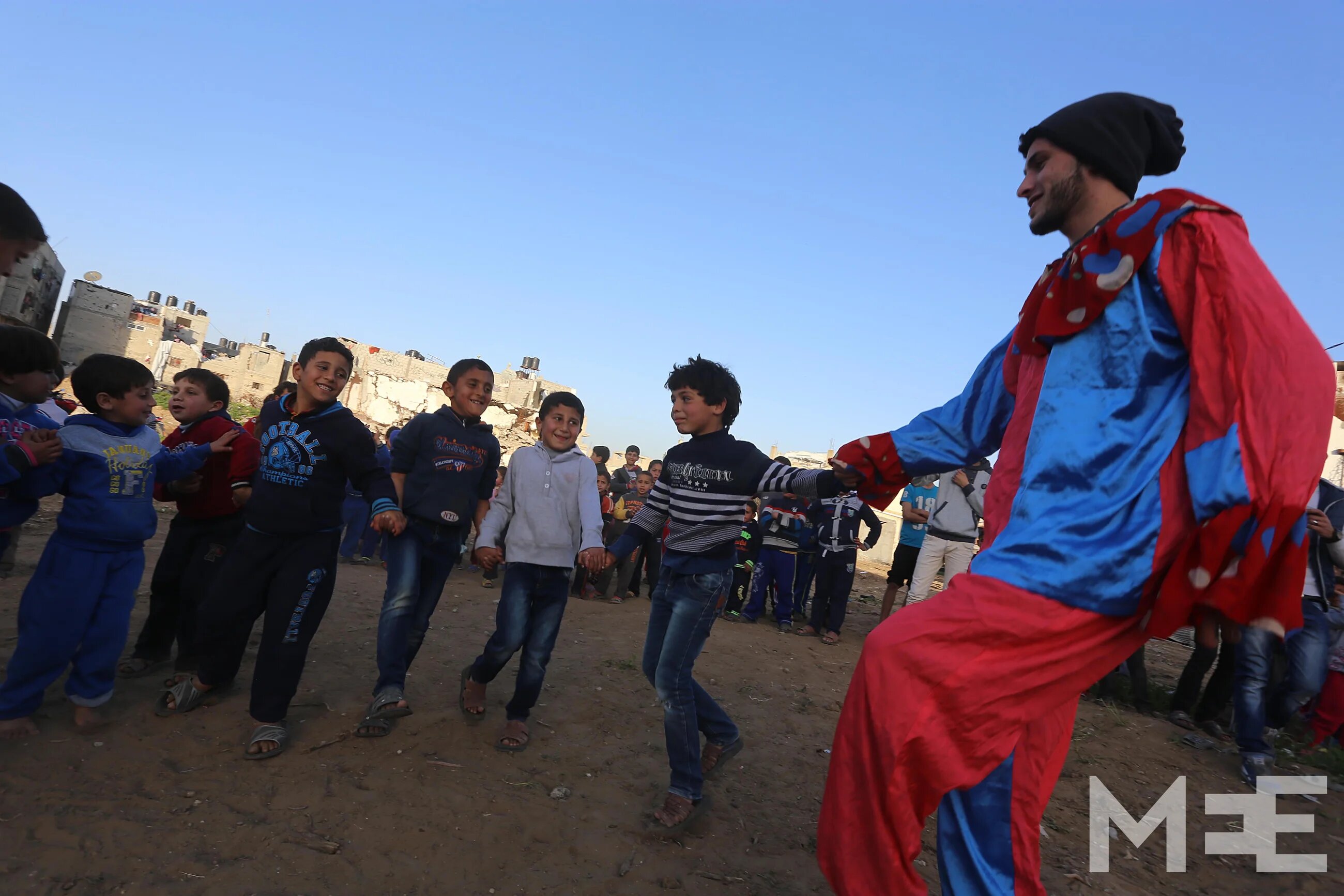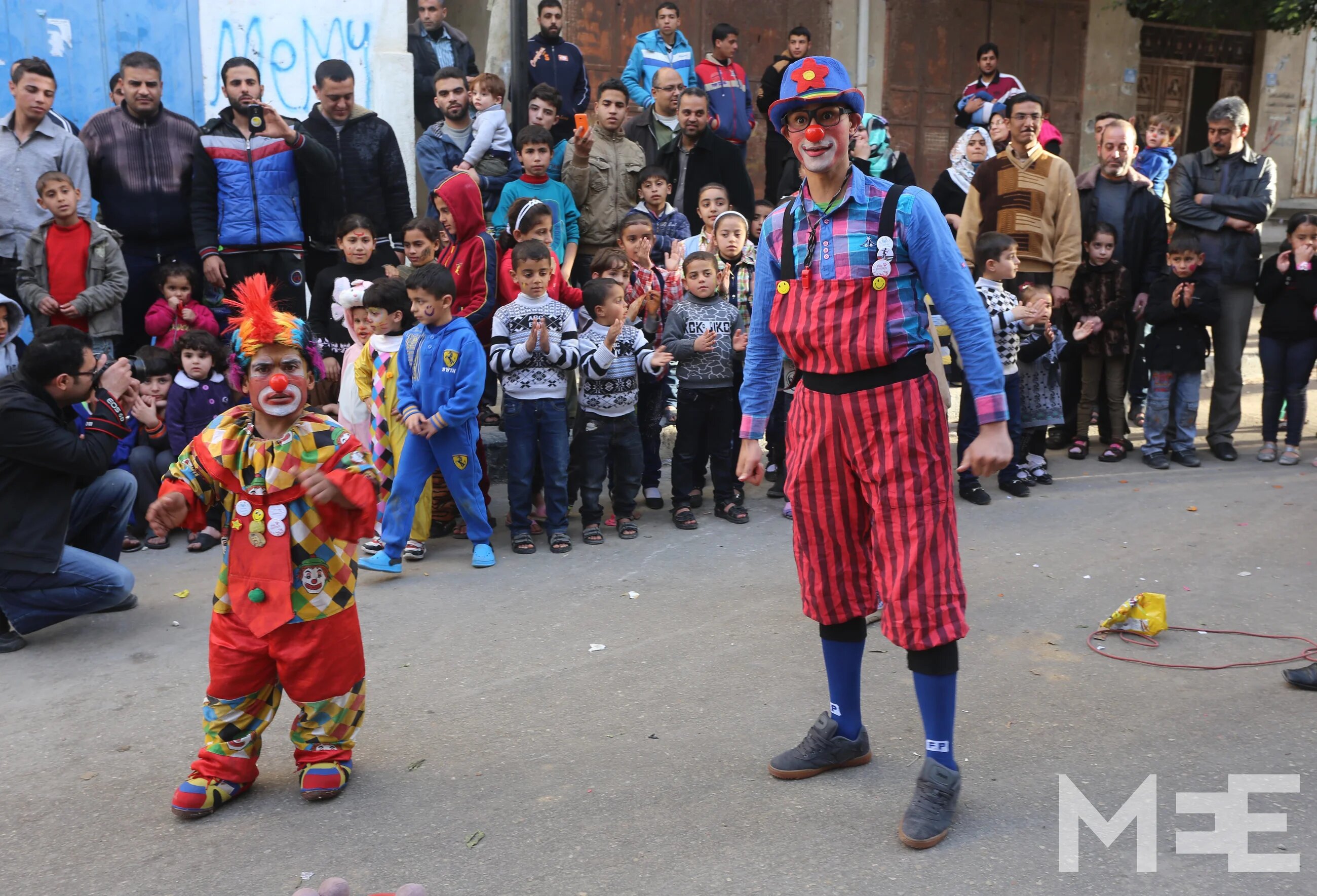 Clowns entertaining Gaza children in the eastern district of Shujaya
