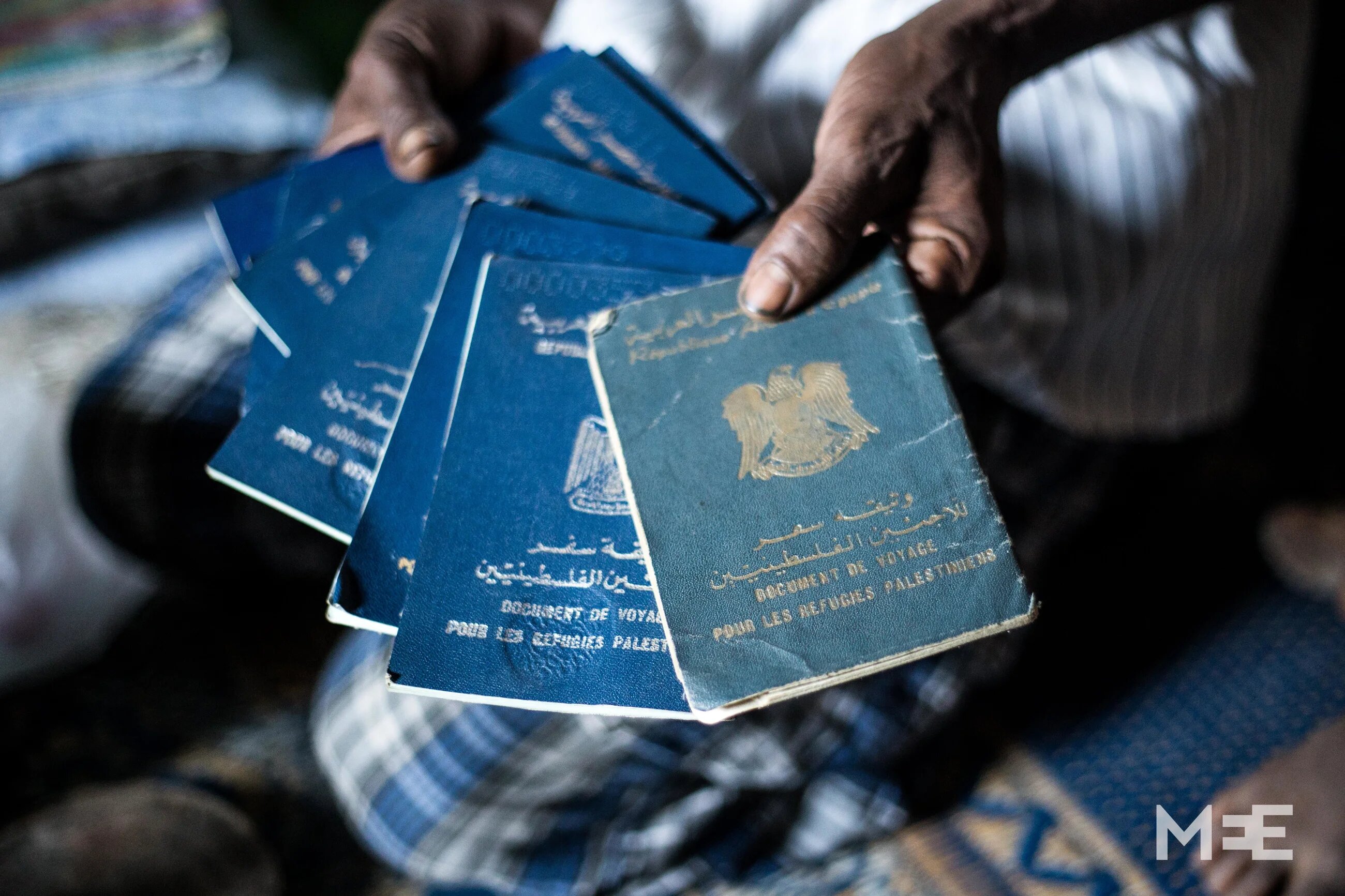 Many of the refugees who live in this refugee camp still possess their original Palestinian passports (MEE/Ibrahim Ahmad)