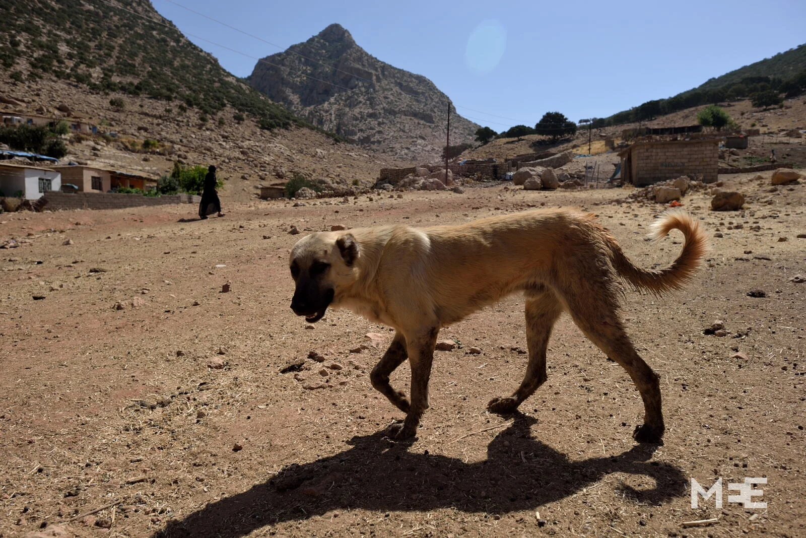 A typical Kurdish shepherd dog wanders around Gunduk Village (MEE/Jerzy Wierzbicki)