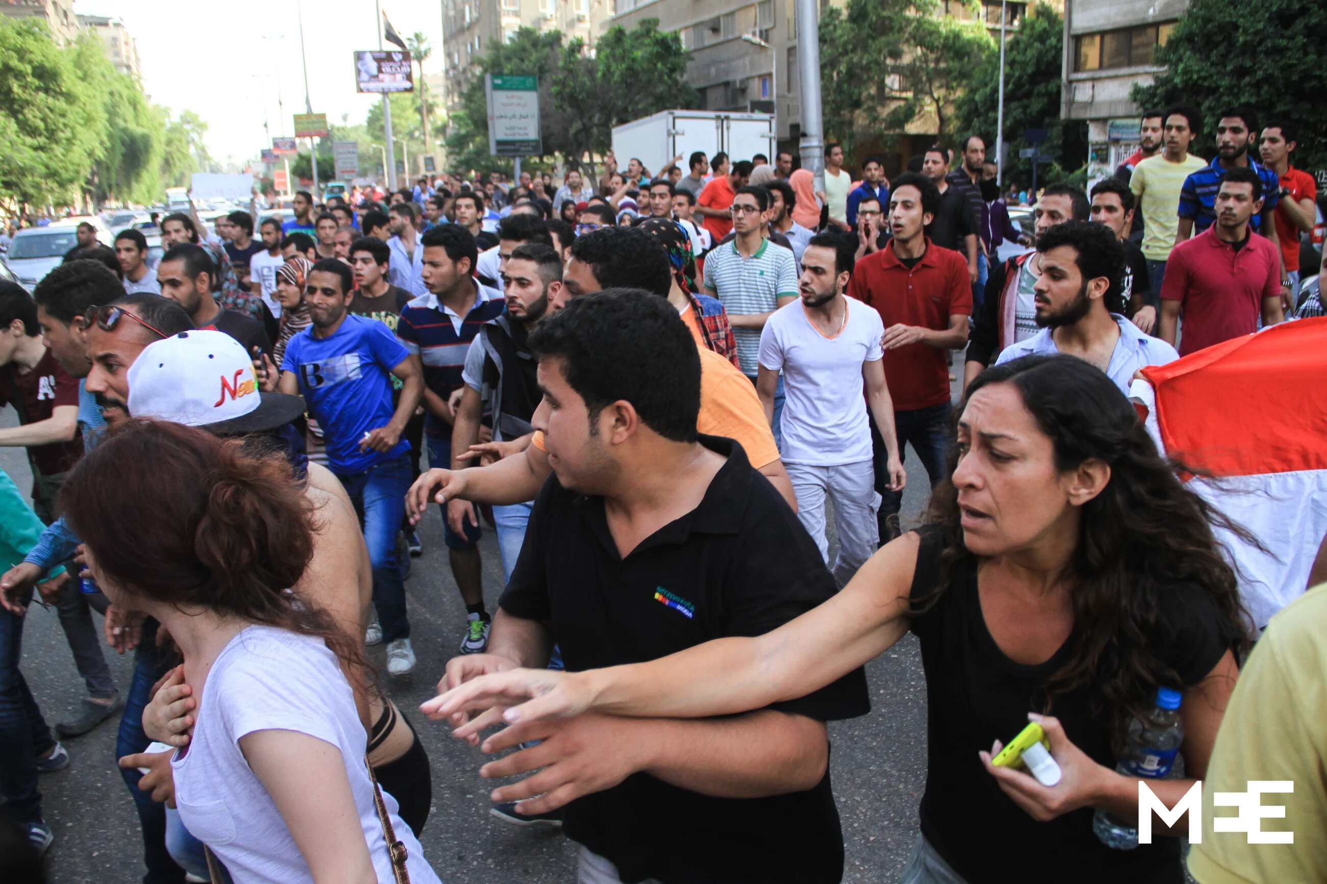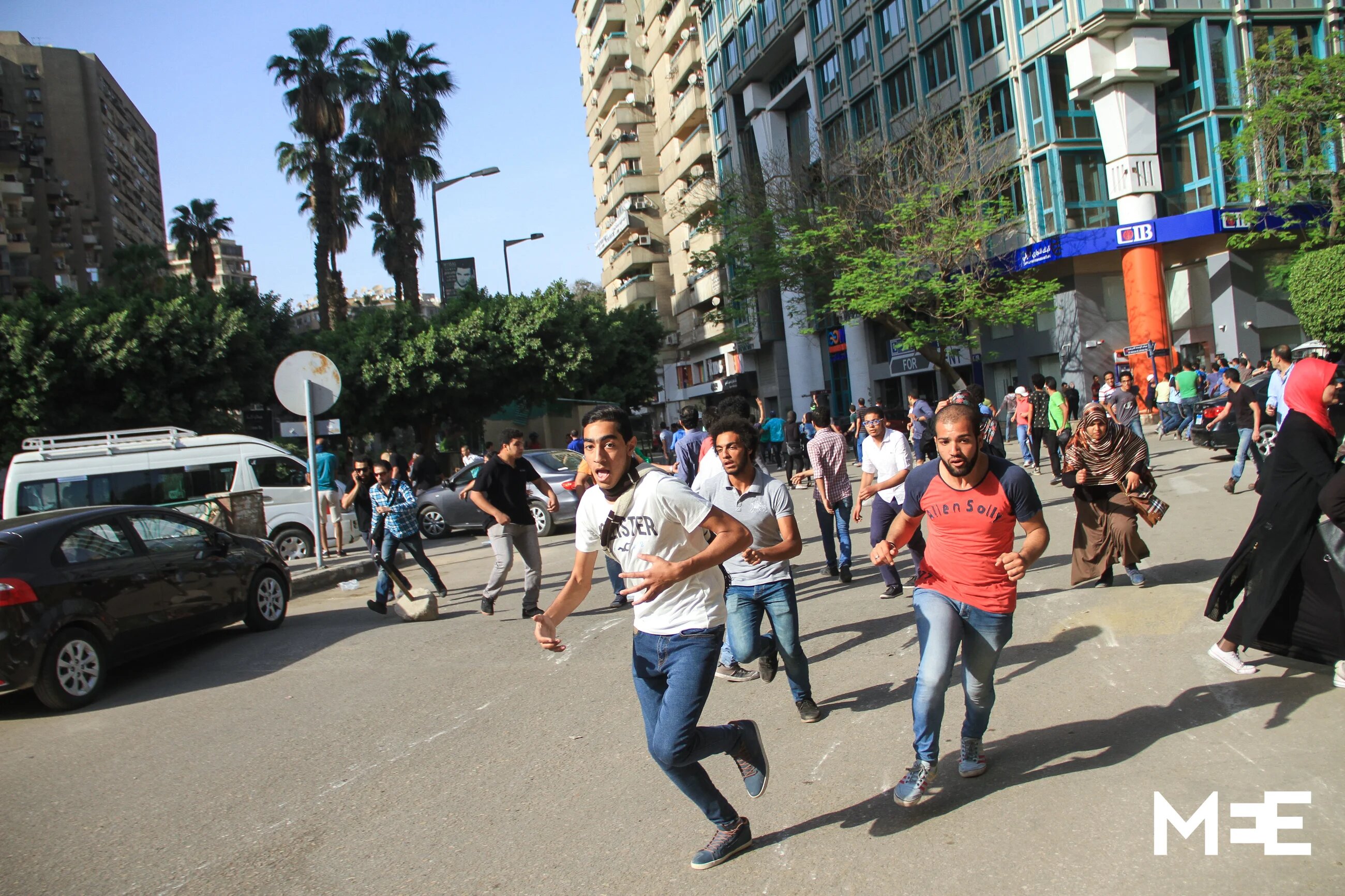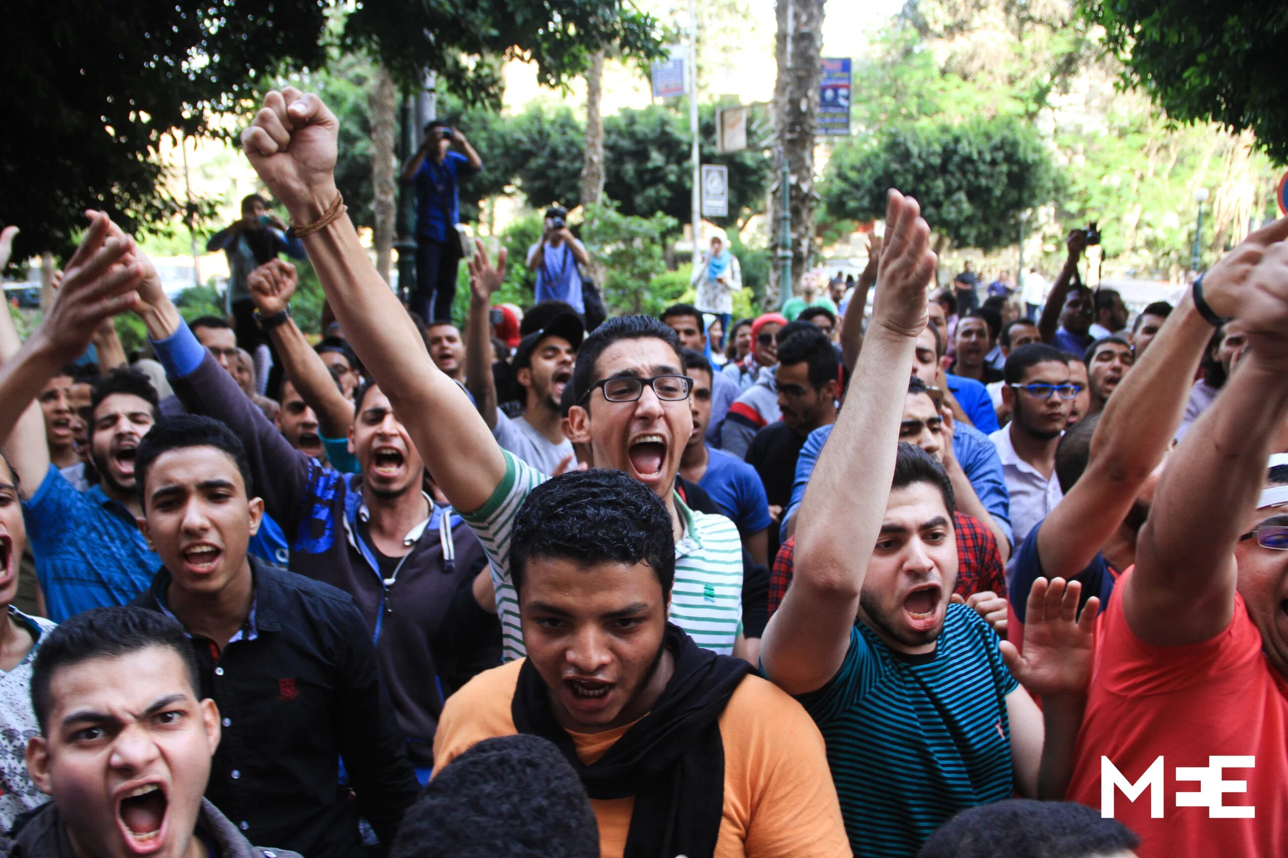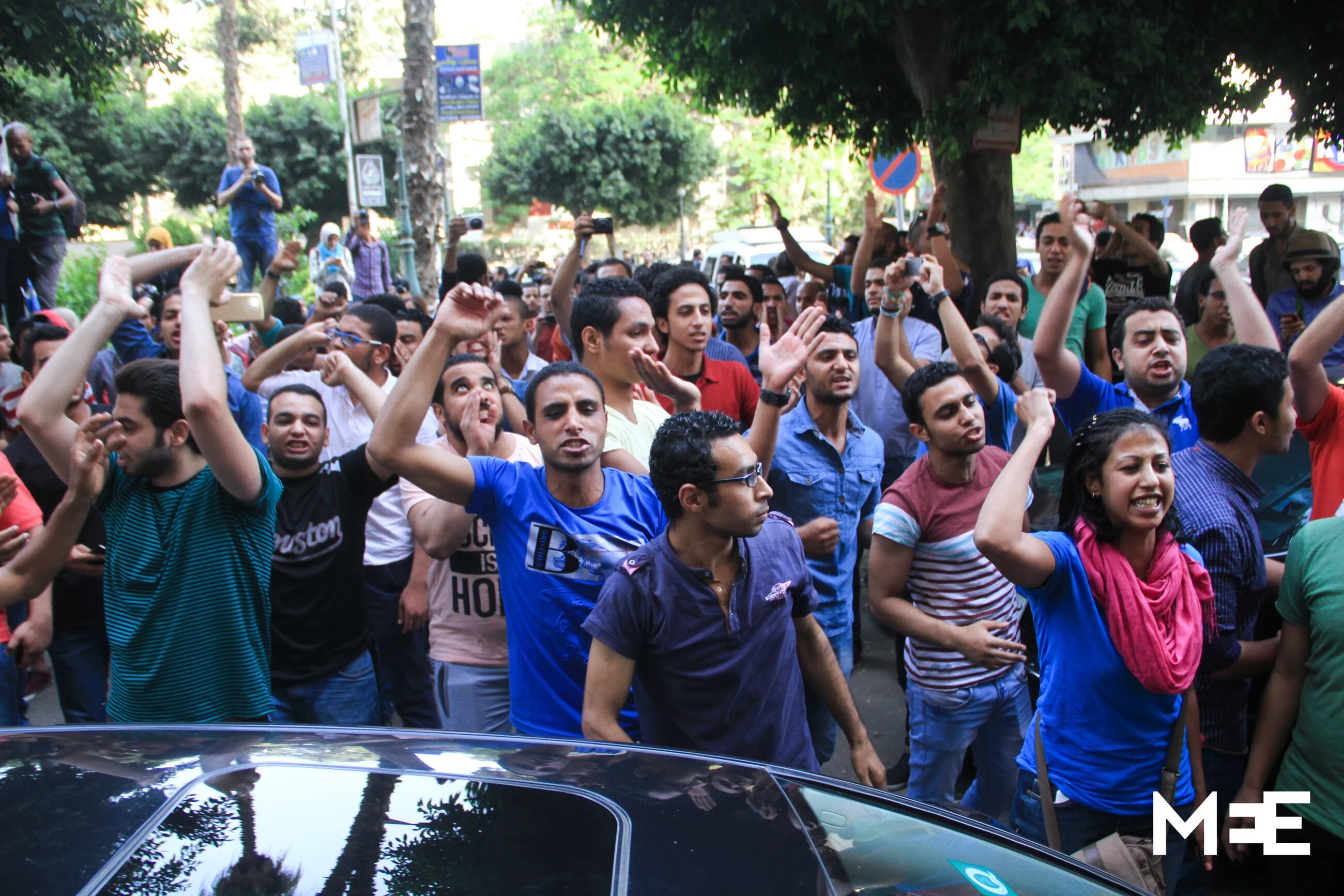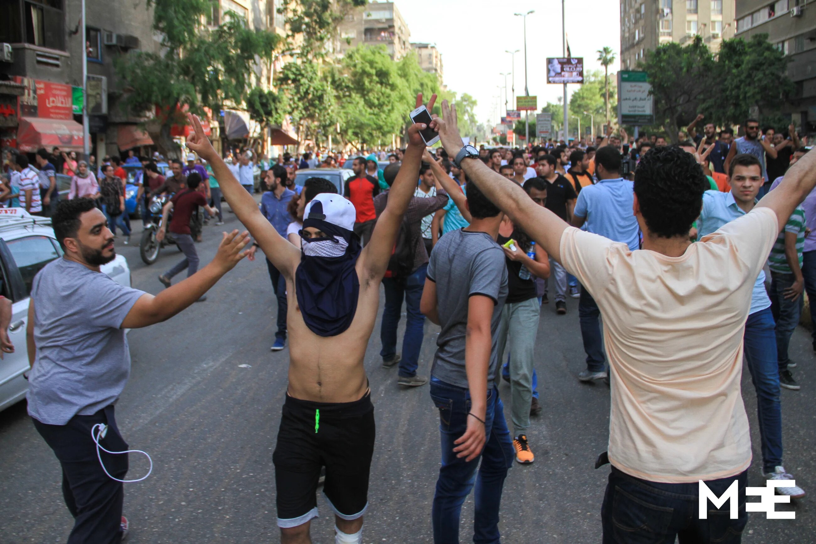 Protesters in Cairo's Dokki neighbourhood on Monday (MEE contributor)