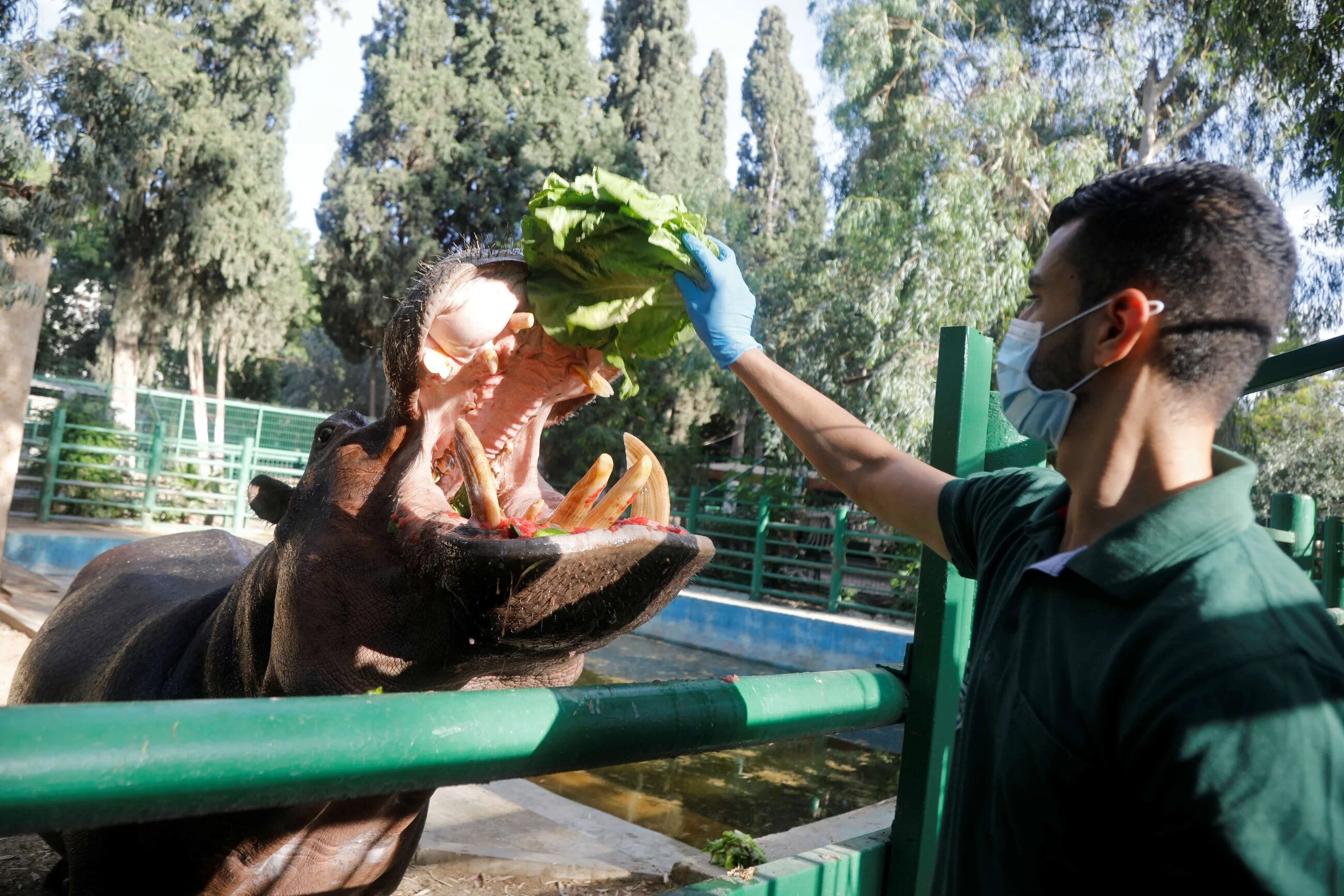"The coronavirus spread at the same time that trips were expected at the zoo. They were cancelled and therefore the animals started to give birth," said zoo veterinarian Sami Khader (Reuters/Raneen Sawafta)