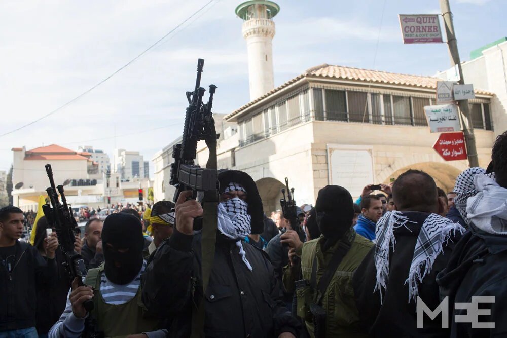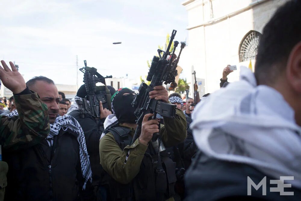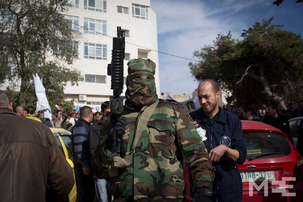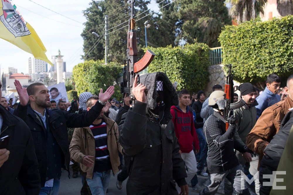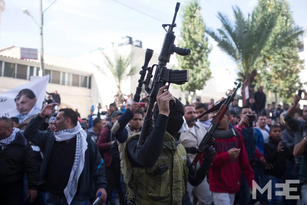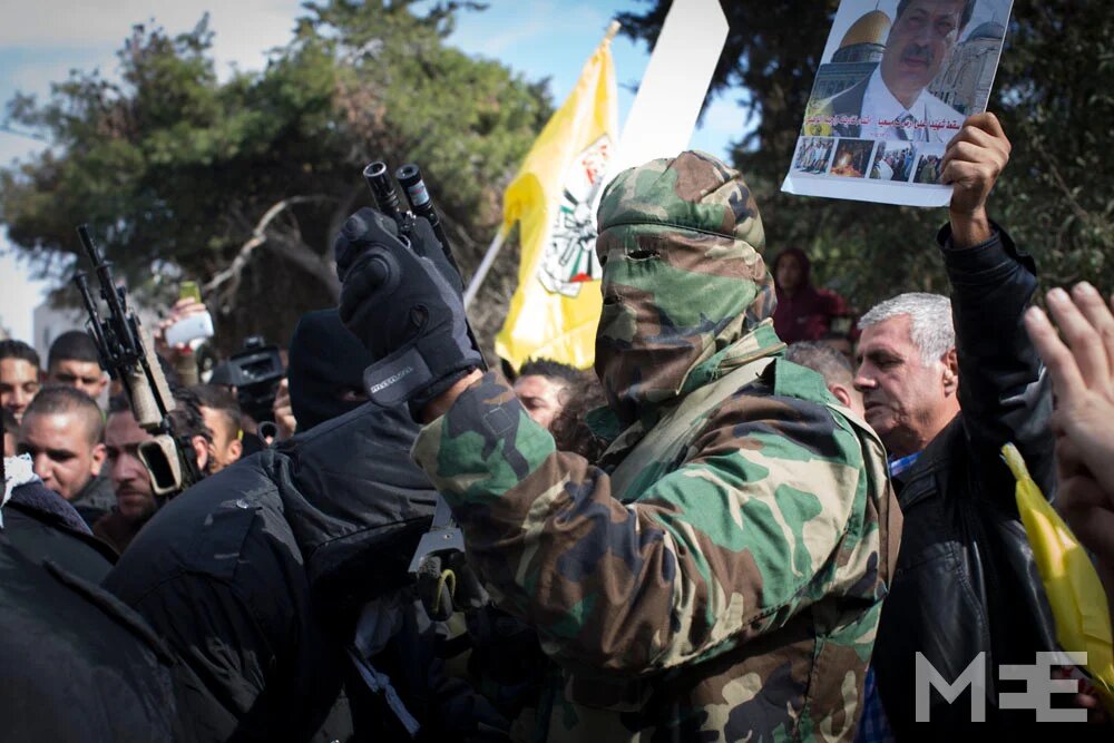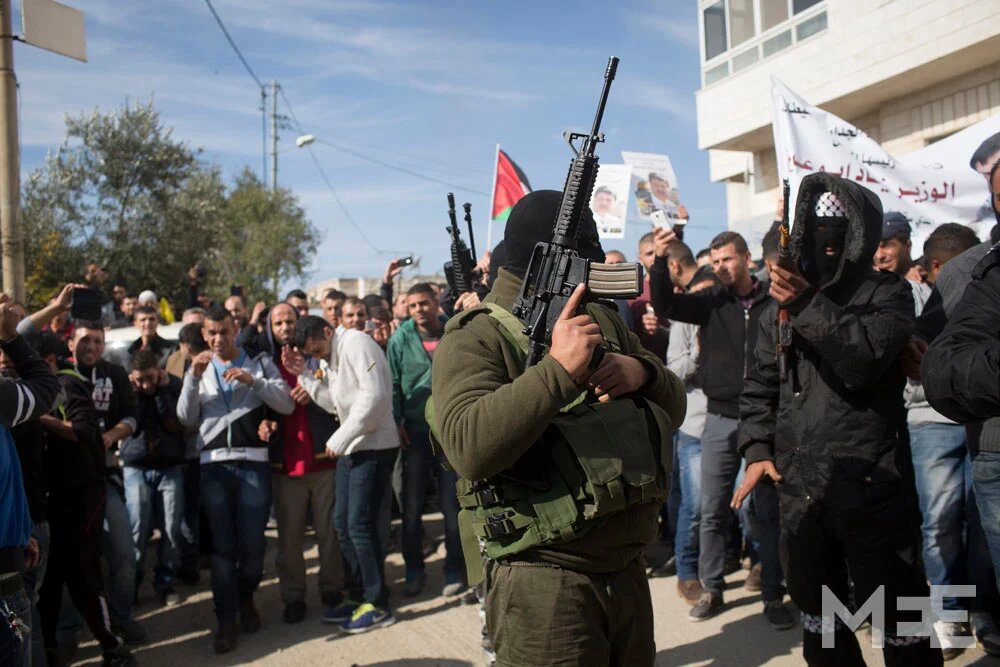 Palestinians protest the death of PA minister Ziad Abu Ein, following his funeral in the West Bank (MEE/Oren Ziv)
