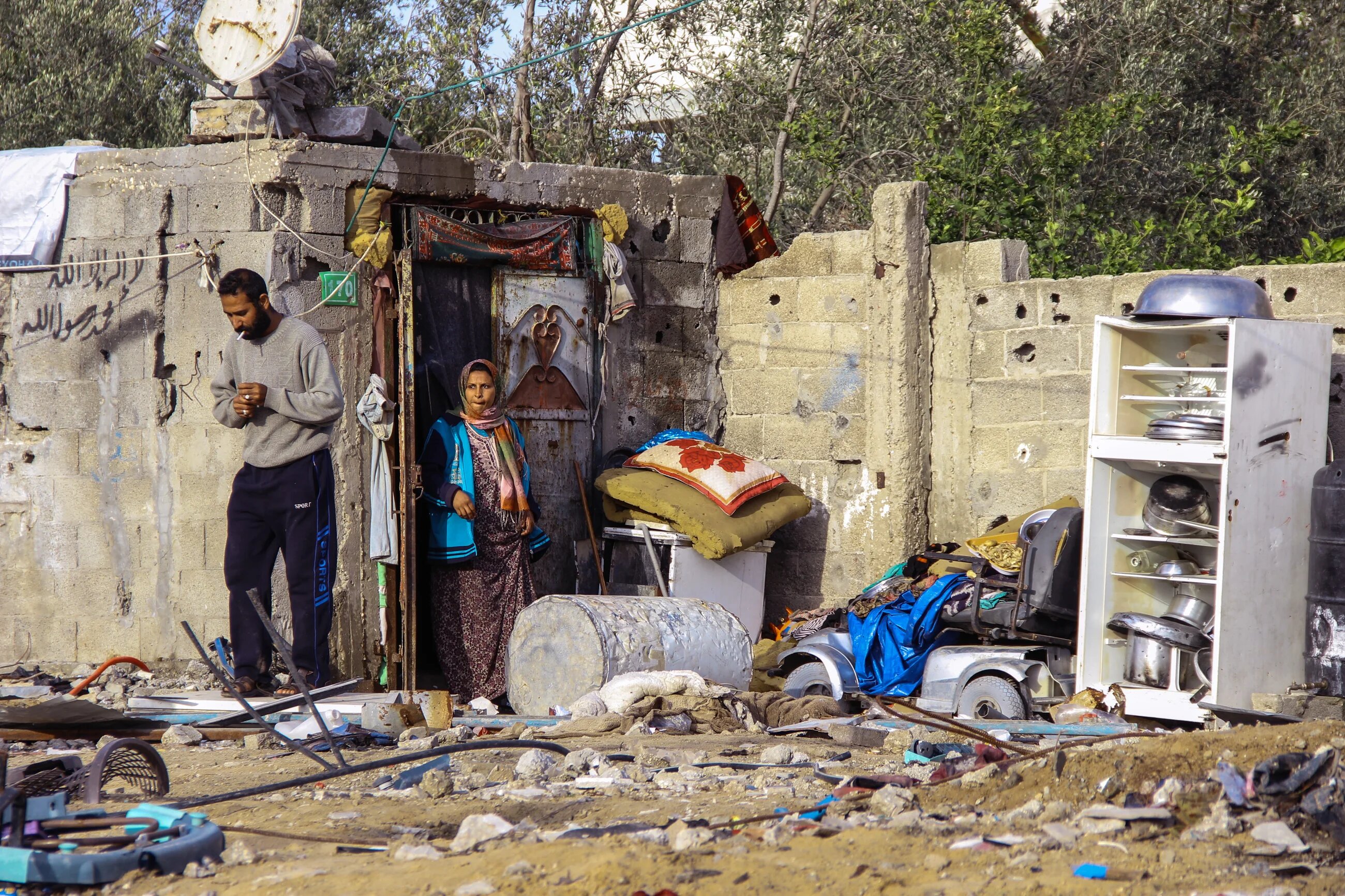 Approximately 100,000 Palestinians remain displaced this winter as their homes were destroyed during the 2014 Israeli military offensive (MEE/Anne Paq/Basel Yazouri)