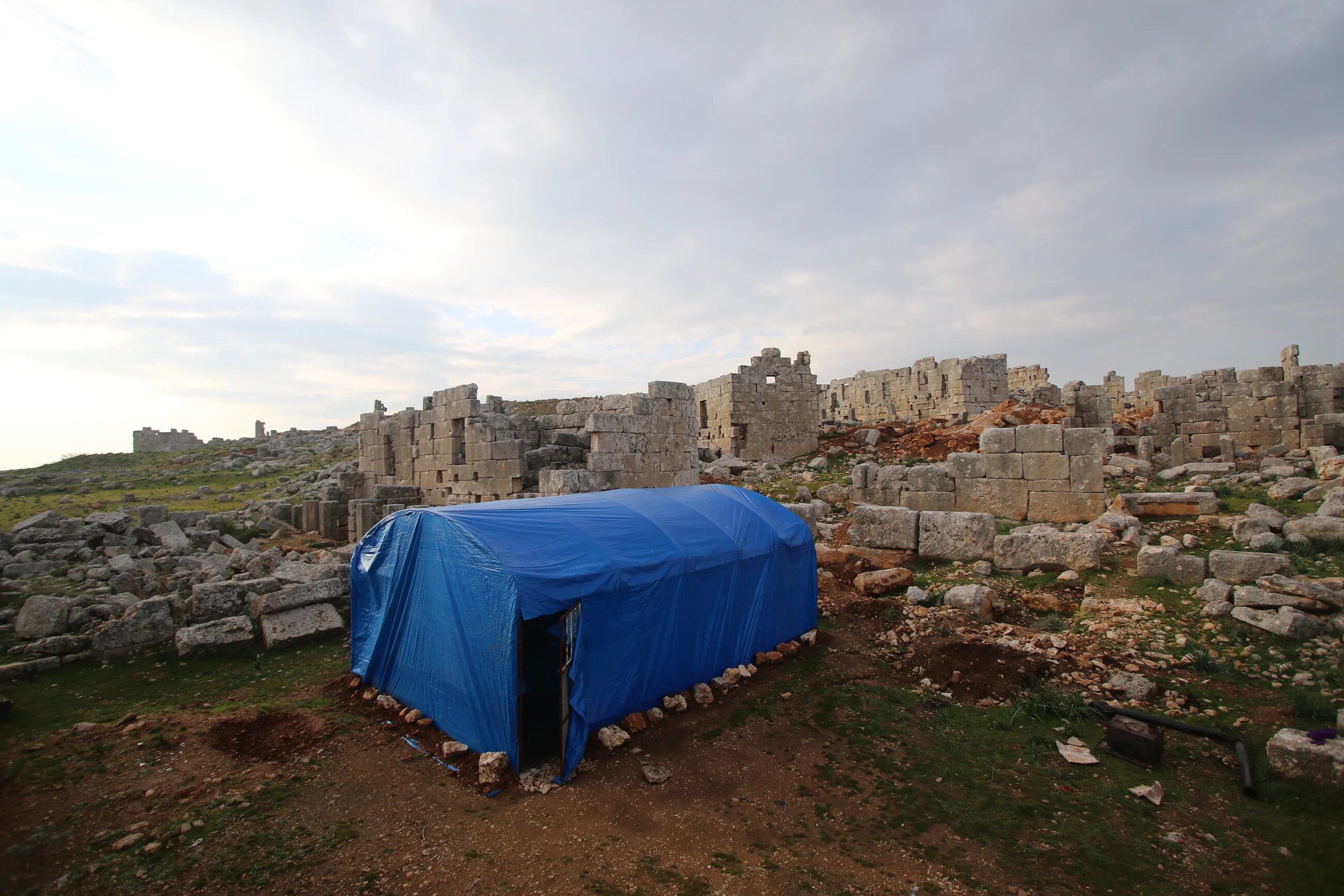 Displaced from the Aleppo countryside, some now reside at the archaeological site of Deir Amman in Aleppo province (MEE/Abdulwajed Haj Esteifi)