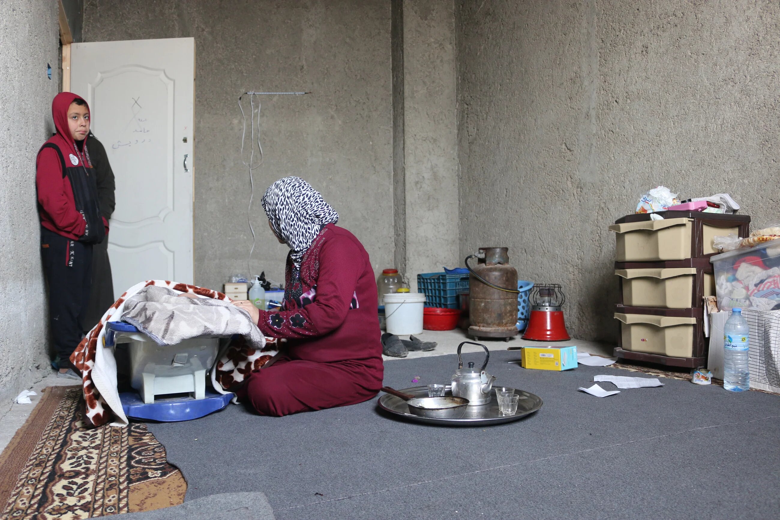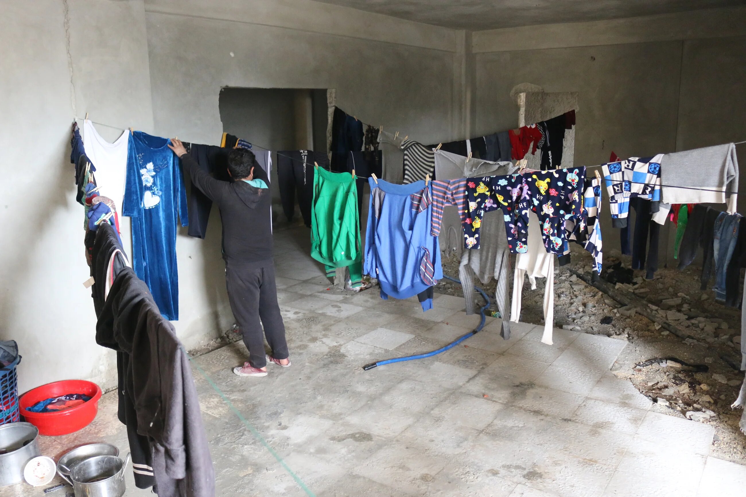Abu Mahmoud and his family live inside the former education directorate building (MEE/Mustafa Dahnon)