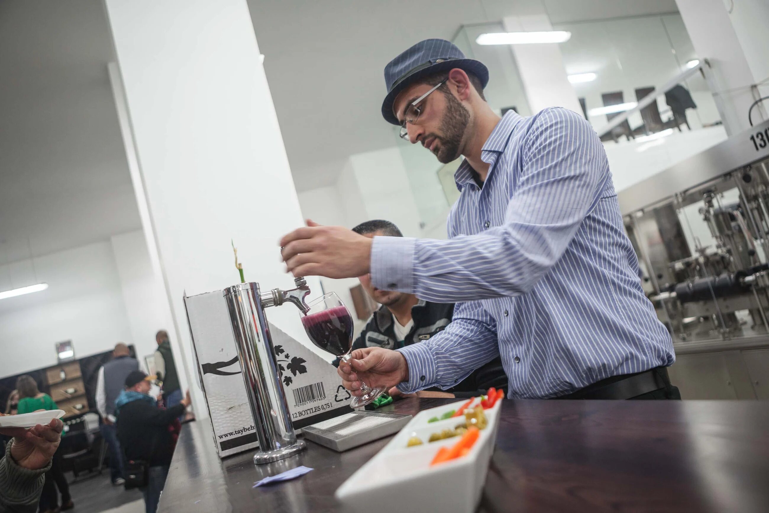 Canaan Knoury pours a glass of Cabernet Sauvignon to a waiting guest (MEE/Andrea Dicenzo)