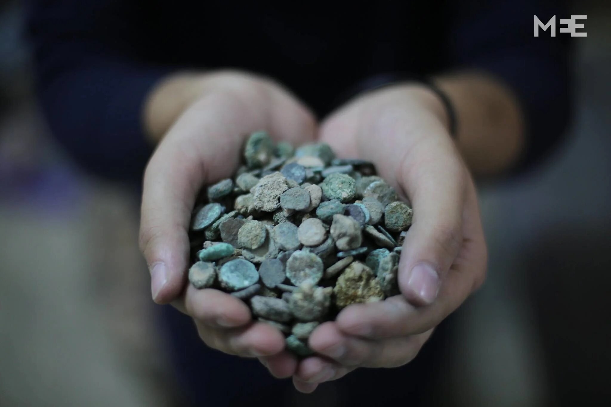 Encrusted coins possibly dating back to the Byzantine Greek, Roman and Islamic era (Mohammad Assad/MEE)