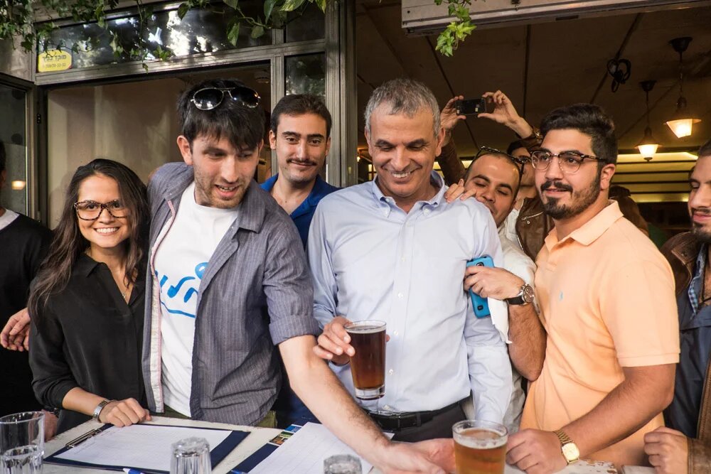 Moshe Kahlon, head of the Kulanu [All Of Us] party drinks beer at a bar in Tel Aviv. Previously communications minister, he delighted many by slashing telephone network charges (MEE/Oren Ziv and Yotam Ronen)