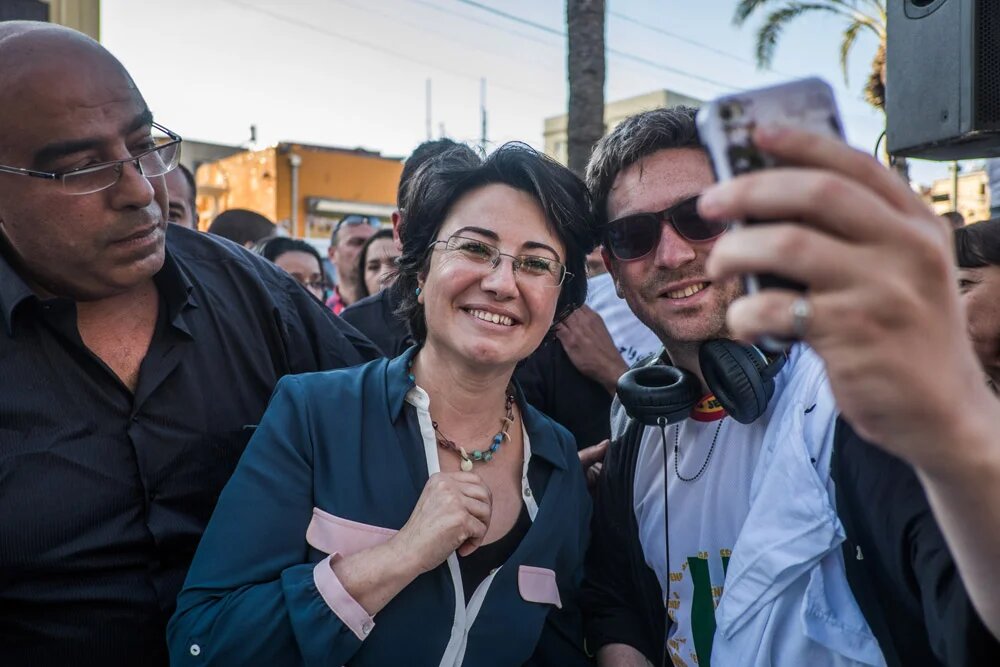 Haneen Zoabi poses during a rally for the Arab Joint List, a coalition of four Arab parties. Zoabi has faced threats during the campaign, and was physically attacked by a right-wing activist in early March (MEE/Oren Ziv and Yotam Ronen)