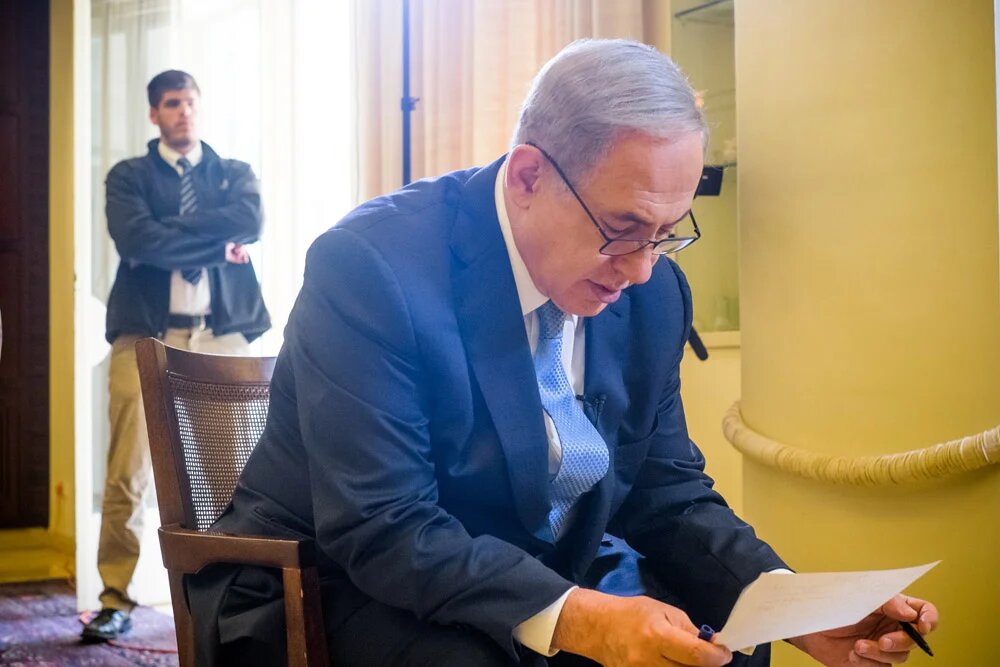 Netanyahu at his Jerusalem office before a media appearance. Initially reticent, Netanyahu began meeting the press frequently in recent days after polls suggested he could lose the election (MEE/Oren Ziv and Yotam Ronen)