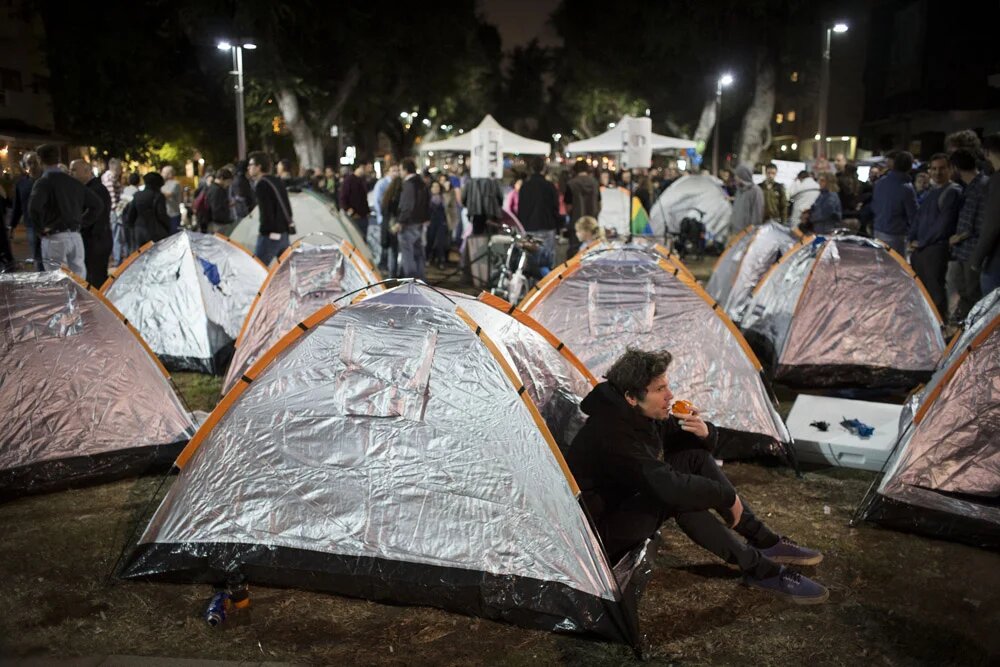 Activists set up tents in central Tel Aviv to protest against the high cost of living. The housing crisis and economic concerns have been key issues for many voters this election (MEE/Oren Ziv and Yotam Ronen)