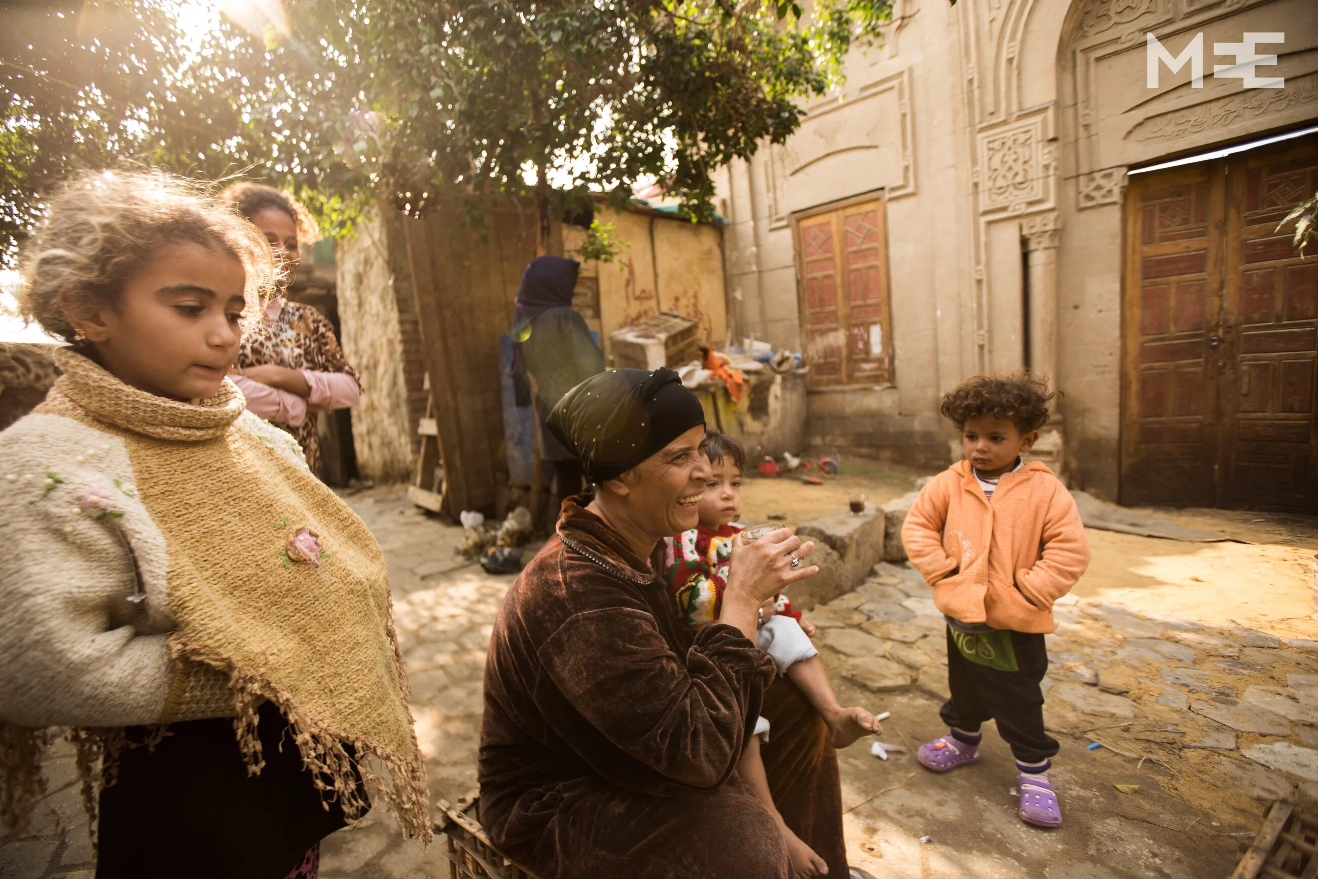Children and elderly women gather for tea in the afternoon (MEE/Belal Darder)