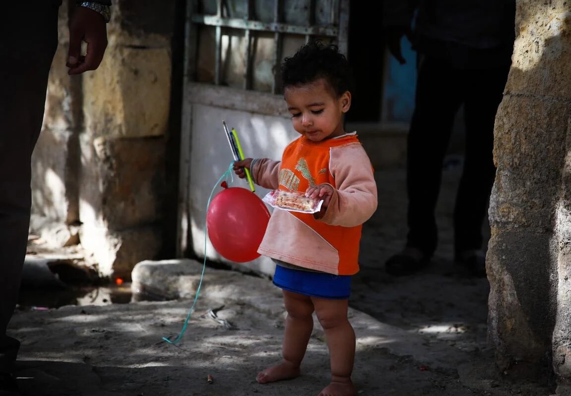 Egypt: A child plays with a balloon she was given as part of the Mawlid charity campaign (AA)