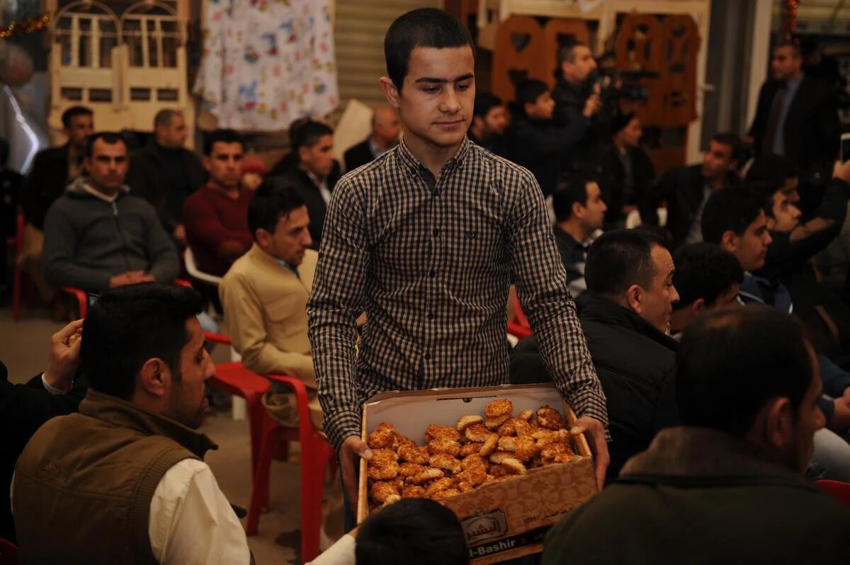 Iraqi Kurdistan: A man distributes traditional sweets during a celebration in Erbil, capital of Iraqi Kurdistan (AA)