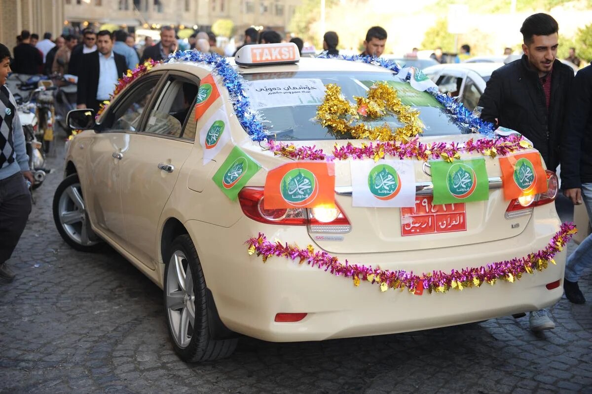 Iraqi Kurdistan: A taxi is bedecked with tinsel in celebration of the festival (AA)