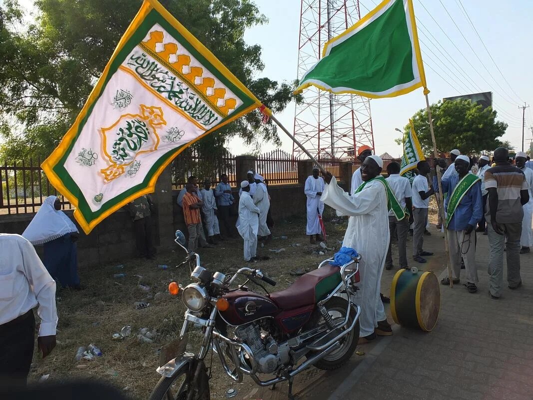 South Sudan: Participants wave flags as the procession takes a rest (AA)