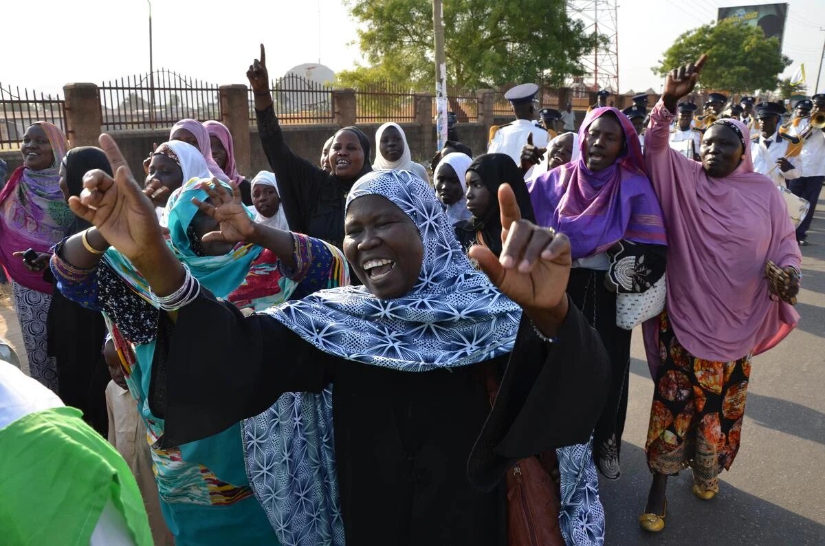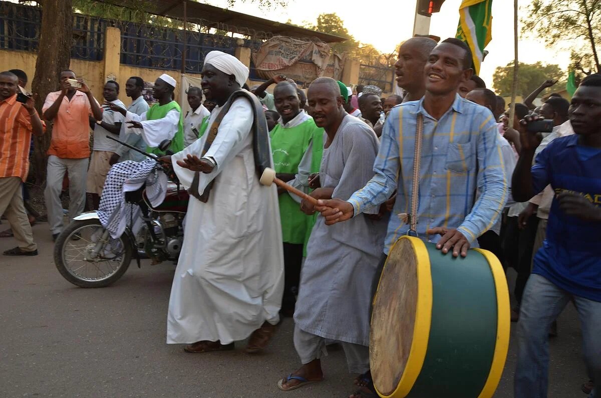 South Sudan: Women shout and dance along with a marching band (AA)