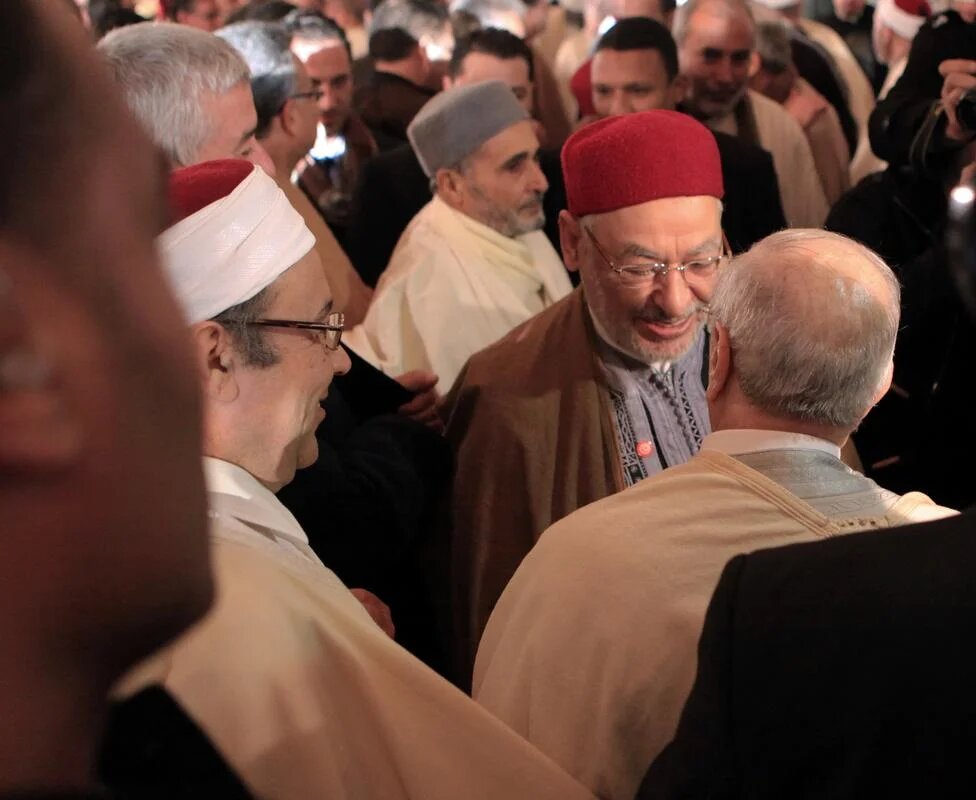 Tunisia: Rachid Ghannoushi, head of Essebsi's rival Ennahda party, attends the same celebration (AA)
