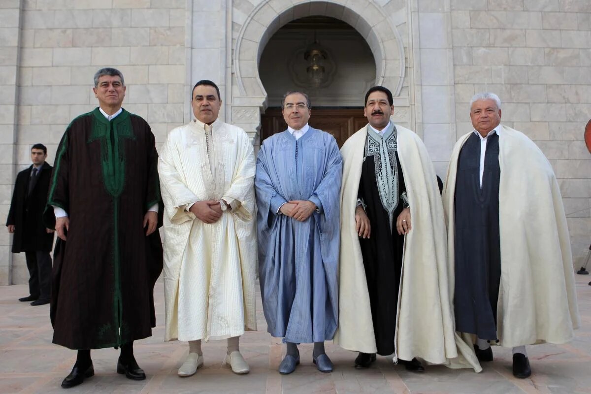 Tunisia: [Left to right] Tunisia's Justice Minister, Interior Minister, Foreign Minister, Prime Minister and Defence Minister pose ahead of the ceremony (AA)
